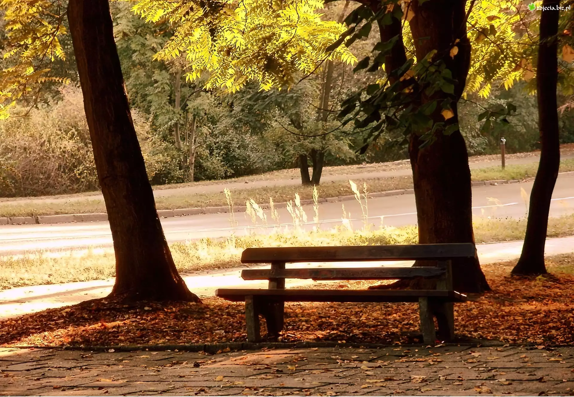 Zdjęcie Park, Ławka, Drzewa, Liście