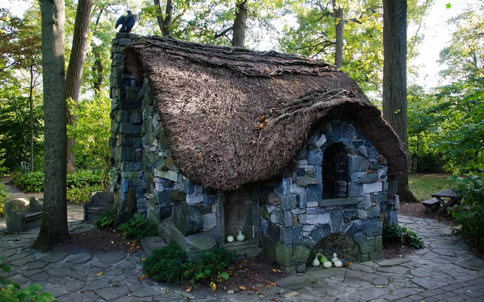 Zdjęcie Park, Domek, Drzewa, Ławki