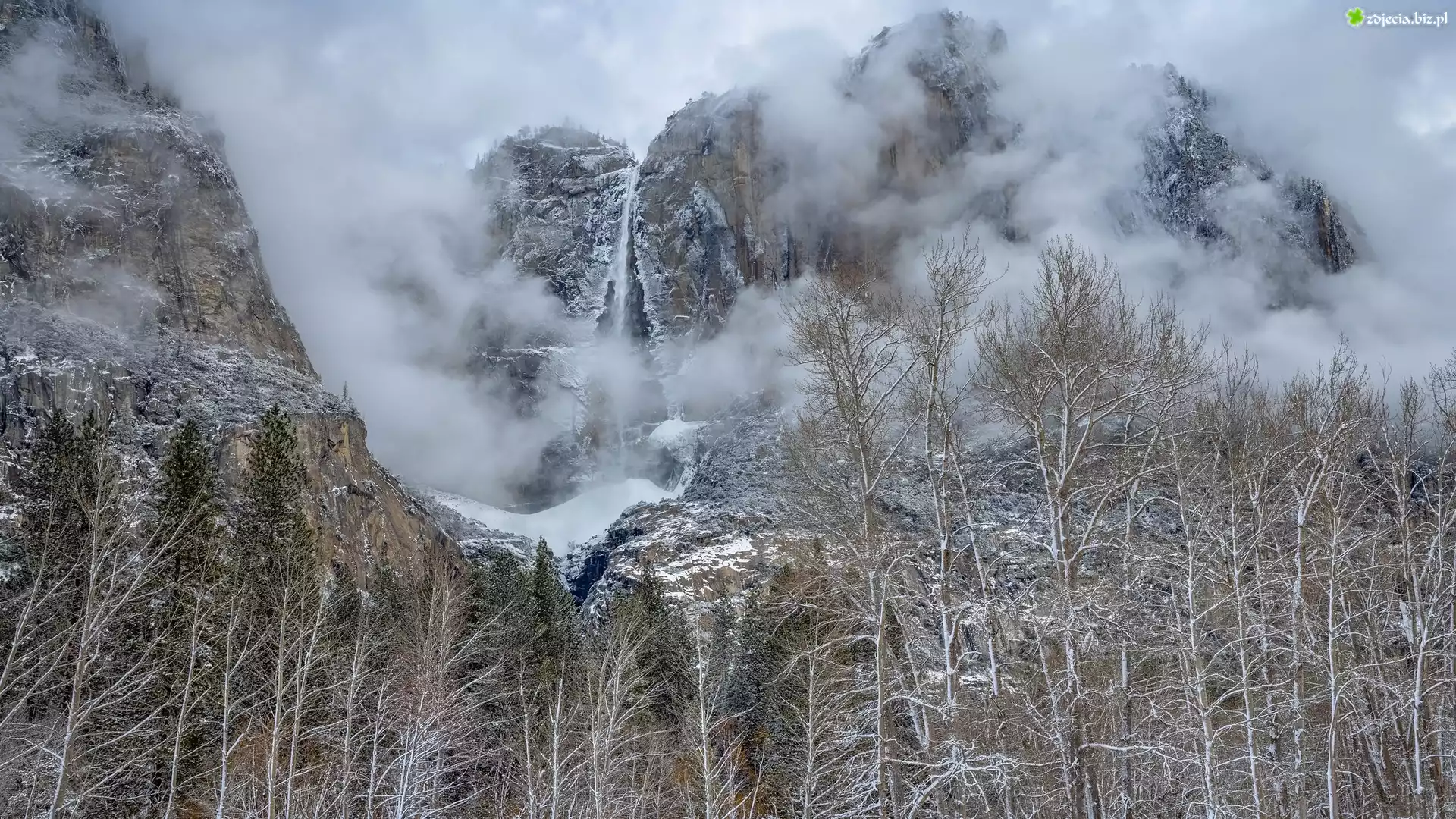 Zdjęcie Park Narodowy Yosemite, Kalifornia, Stany Zjednoczone, Drzewa, Góry, Mgła