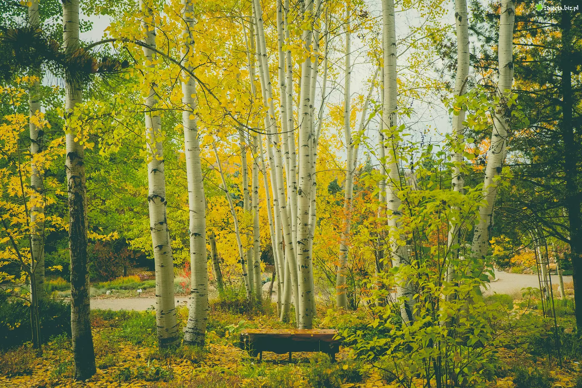 Zdjęcie, Jesień, Drzewa, Brzozy, Park