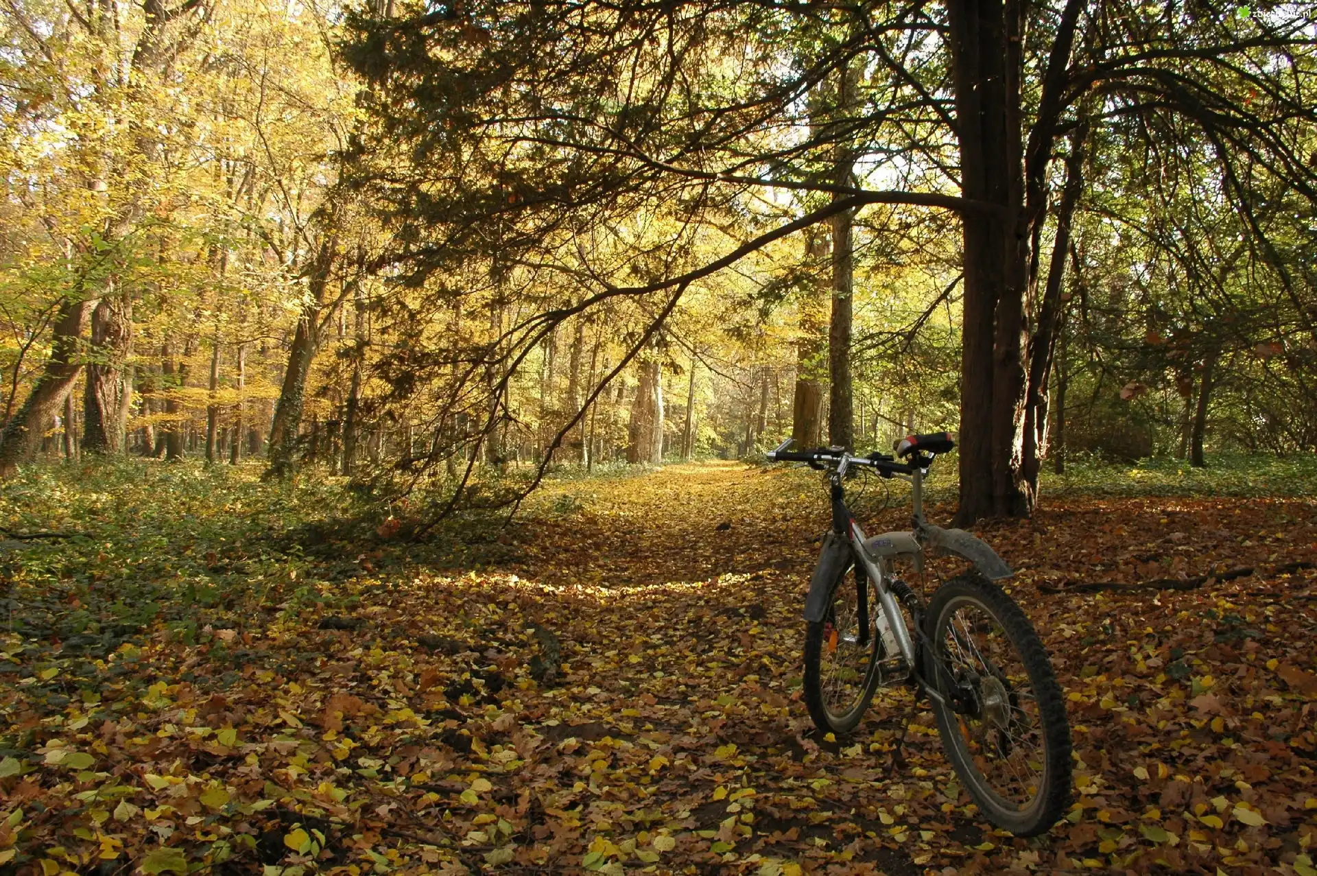 Zdjęcie Park, Drzewa, Jesień, Rower