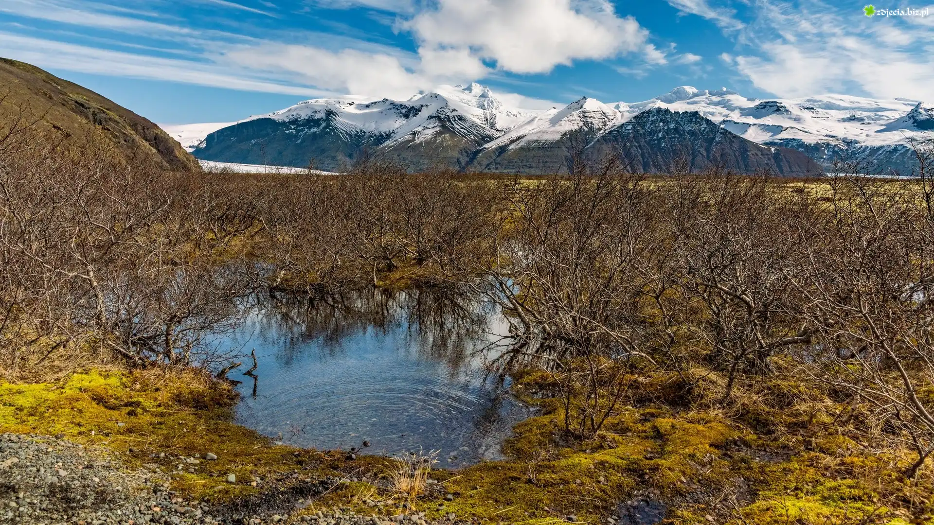 Zdjęcie Islandia, Park Narodowy Vatnajökull, Góry, Drzewa, Jezioro