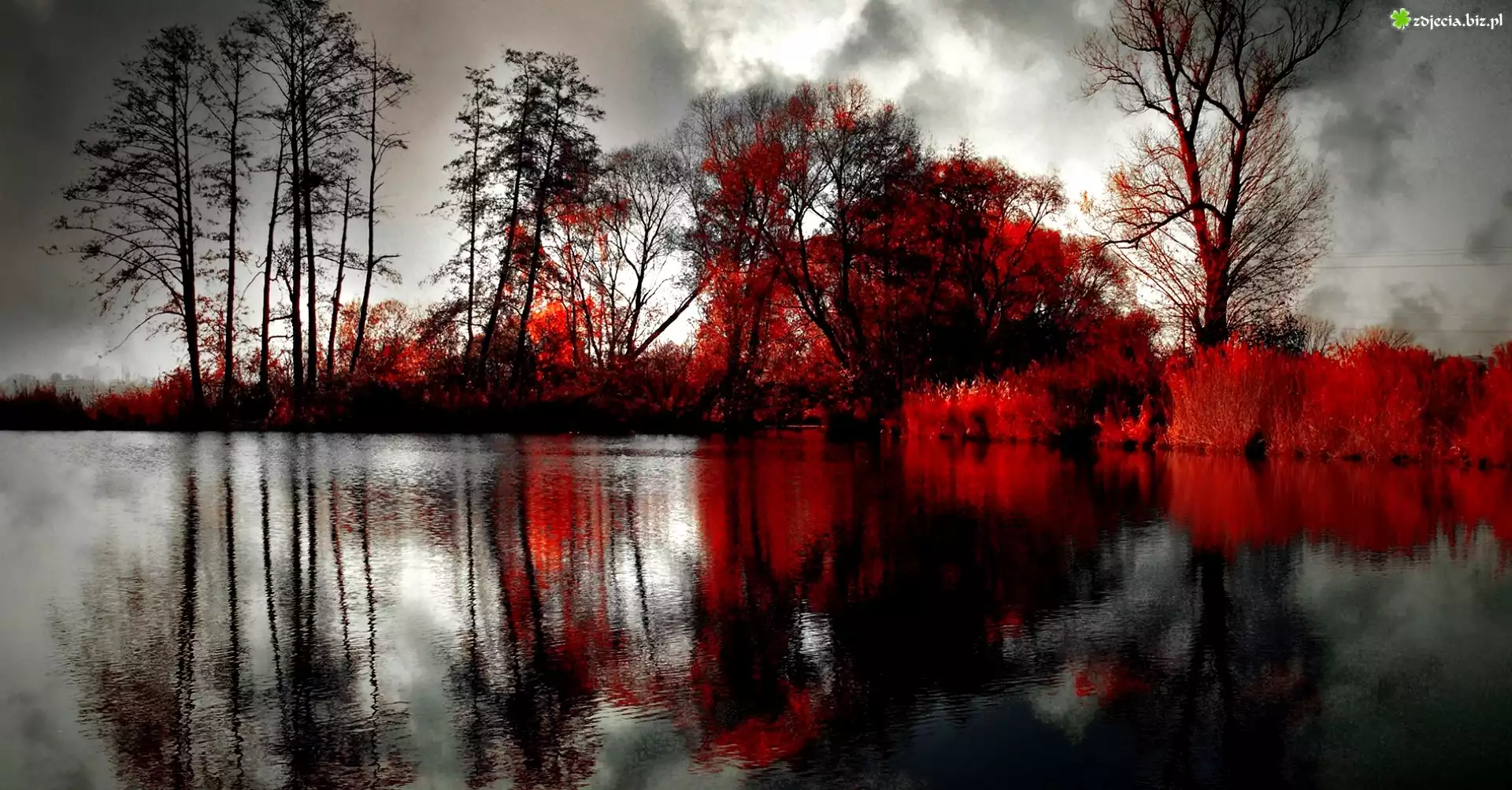 Zdjęcie Park, Jezioro, Chmury, Kolorowe, Drzewa
