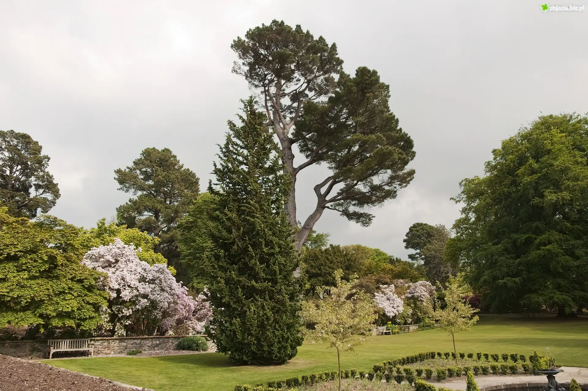 Zdjęcie Park, Drzewa, Kwitnące, Krzewy, Trawnik