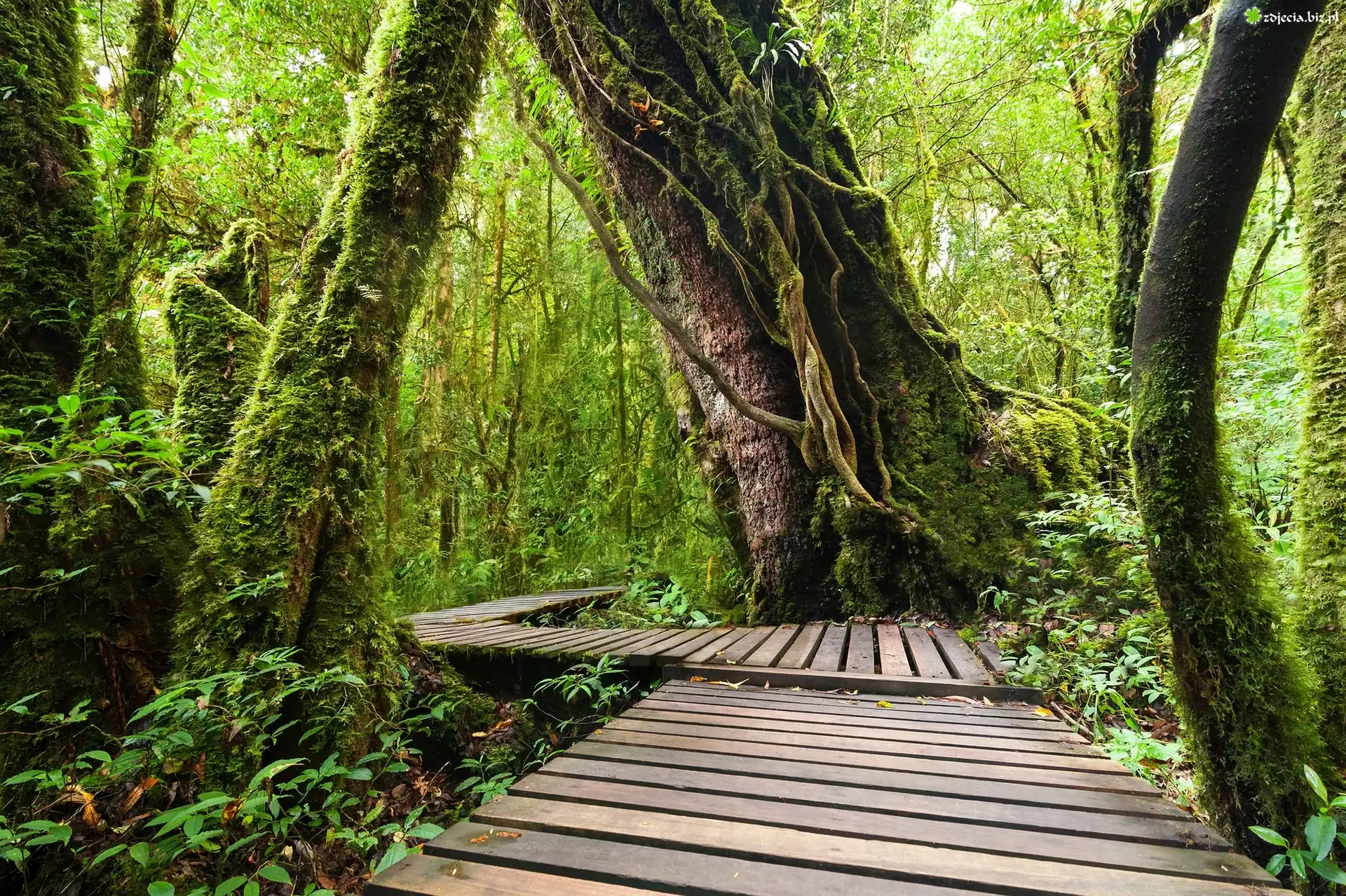 Zdjęcie Las tropikalny, Drewniany, Pomost, Tajlandia, Park Narodowy Doi Inthanon, Chiang Mai, Tajlandia |