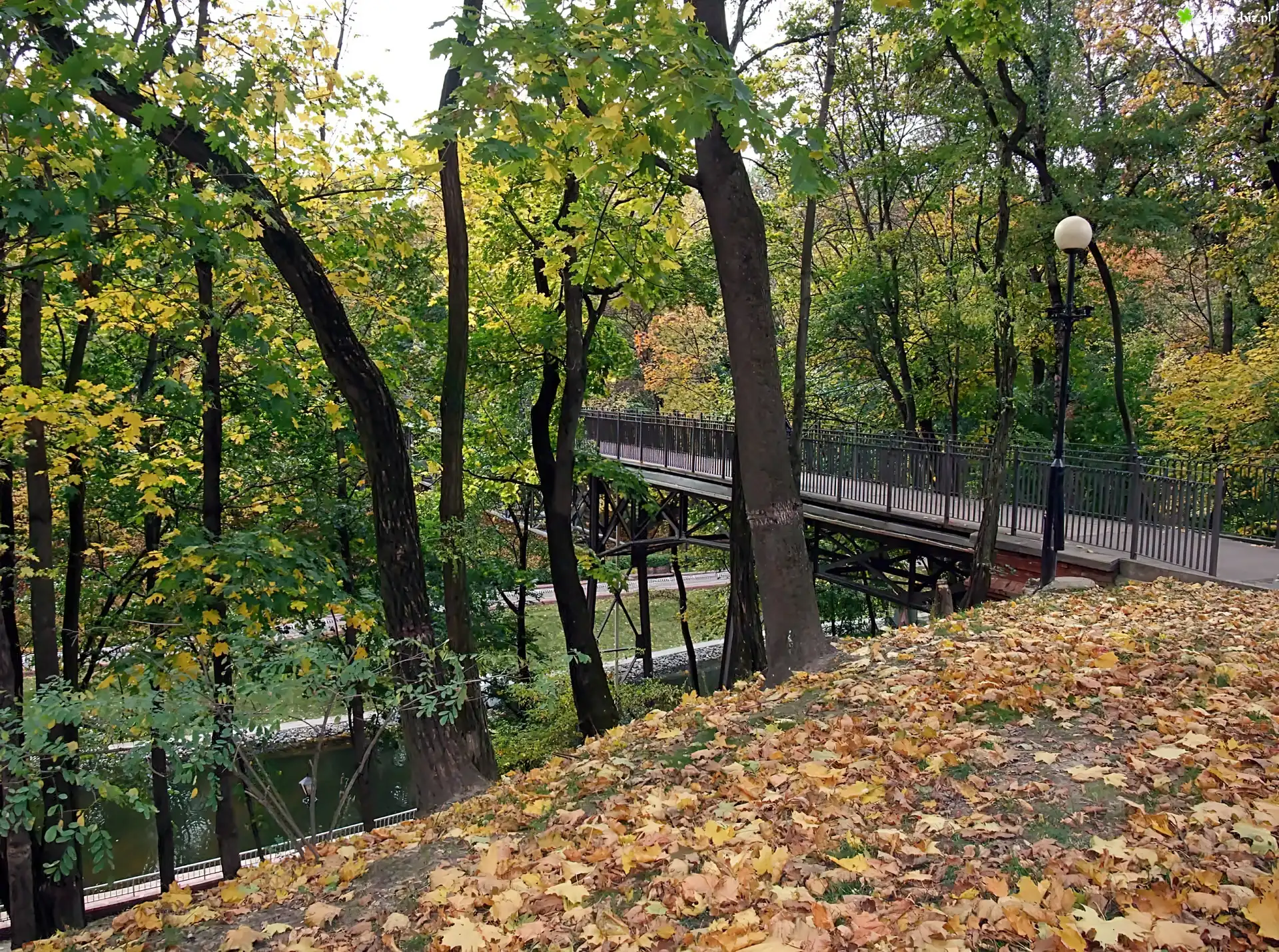 Zdjęcie Park, Rzeczka, Most, Opadłe, Liście