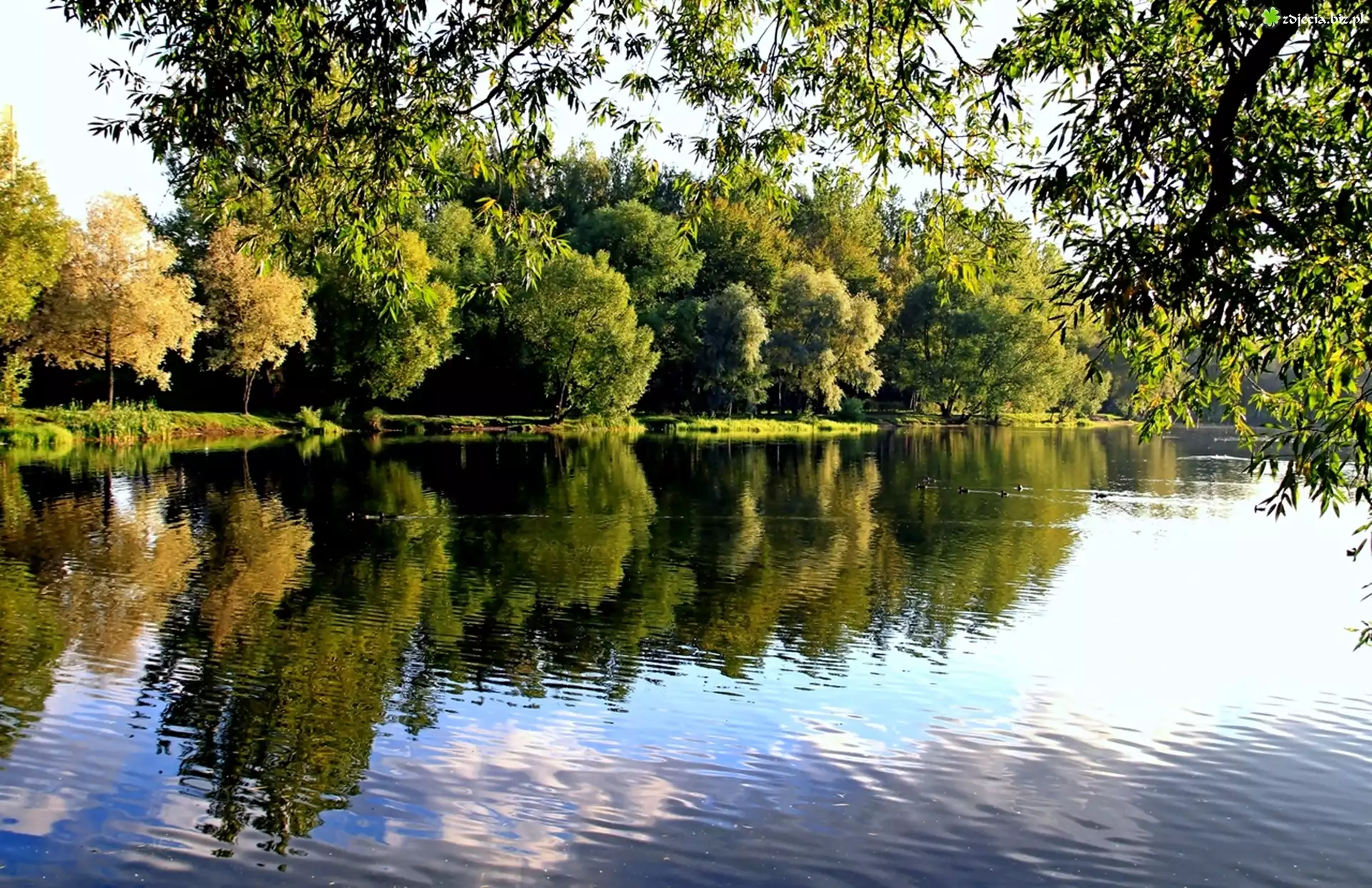 Zdjęcie, Park, Rzeka, Pływające, Kaczki
