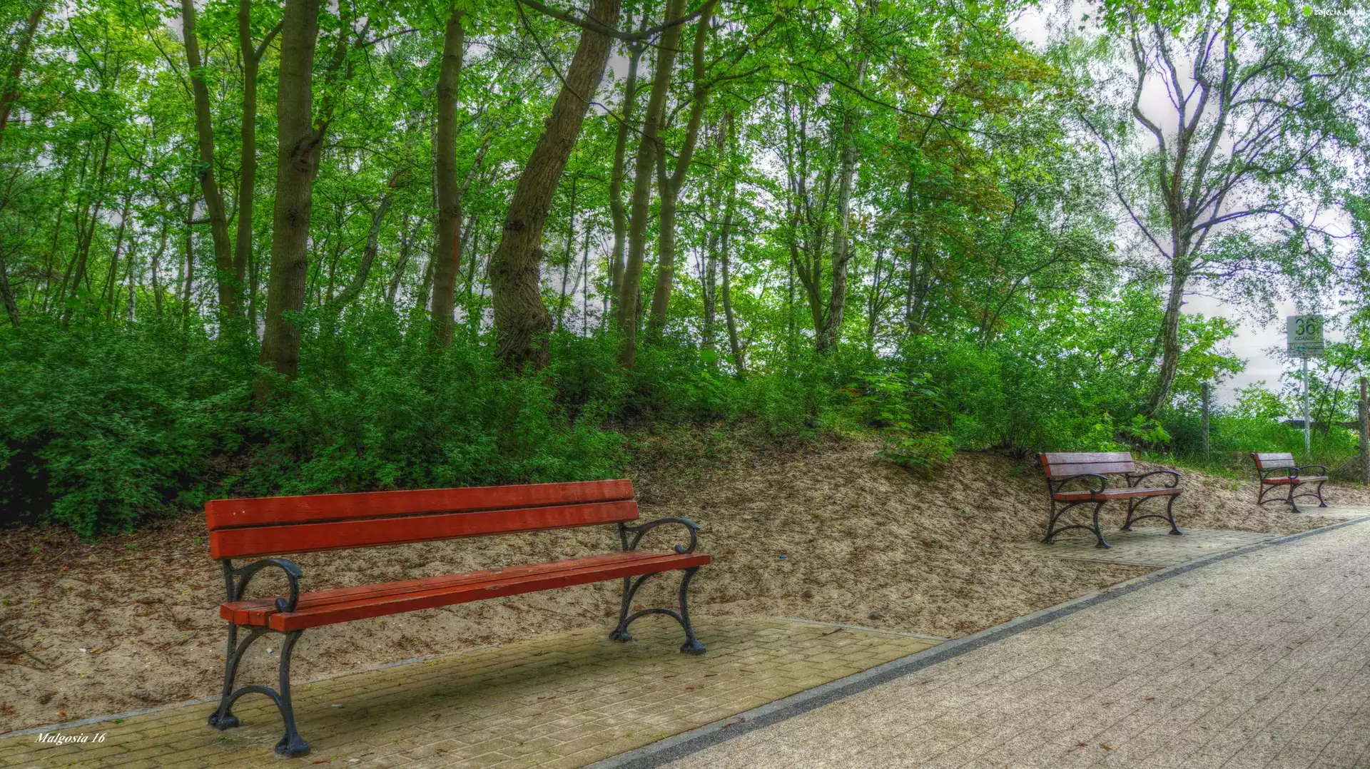Zdjęcie Park, Drzewa, Ławeczki, ścieżka, HDR