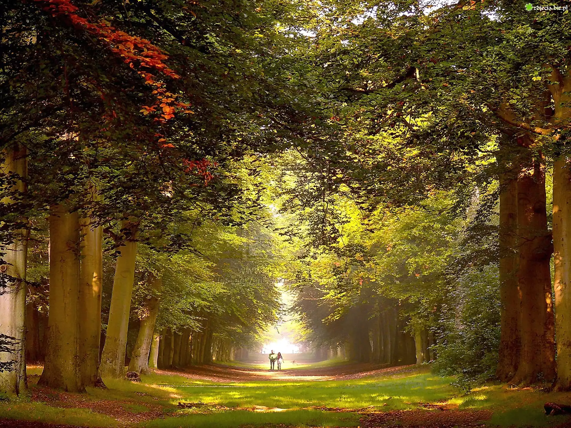 Zdjęcie Park, Aleja, Drzew, Spacerująca, Para