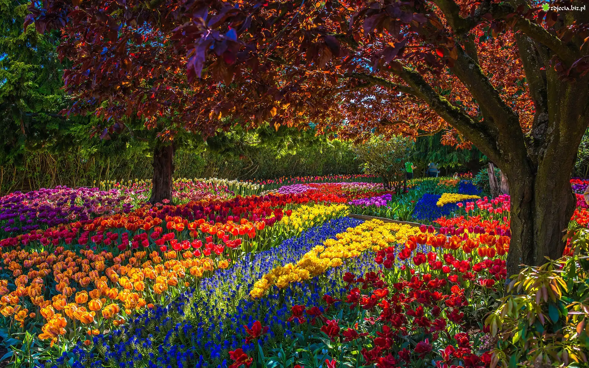 Zdjęcie Park, Wiosna, Tulipany, Drzewa