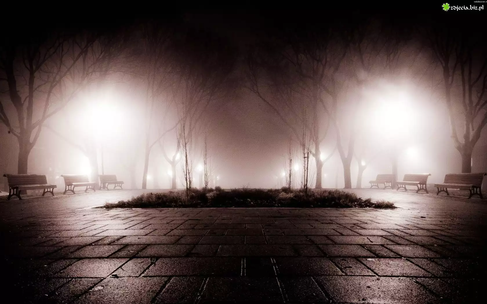Zdjęcie Park, Noc, Światła, Ławki