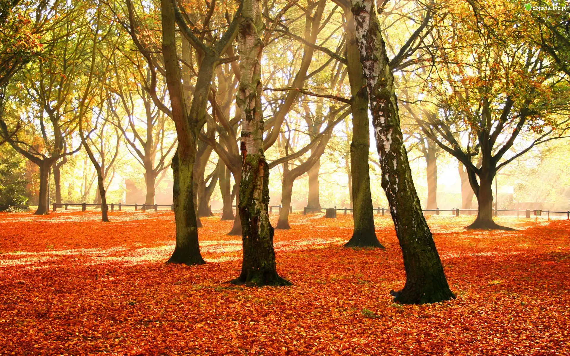 Zdjęcie Park, Liście, Przebijające, Światło, Jesień