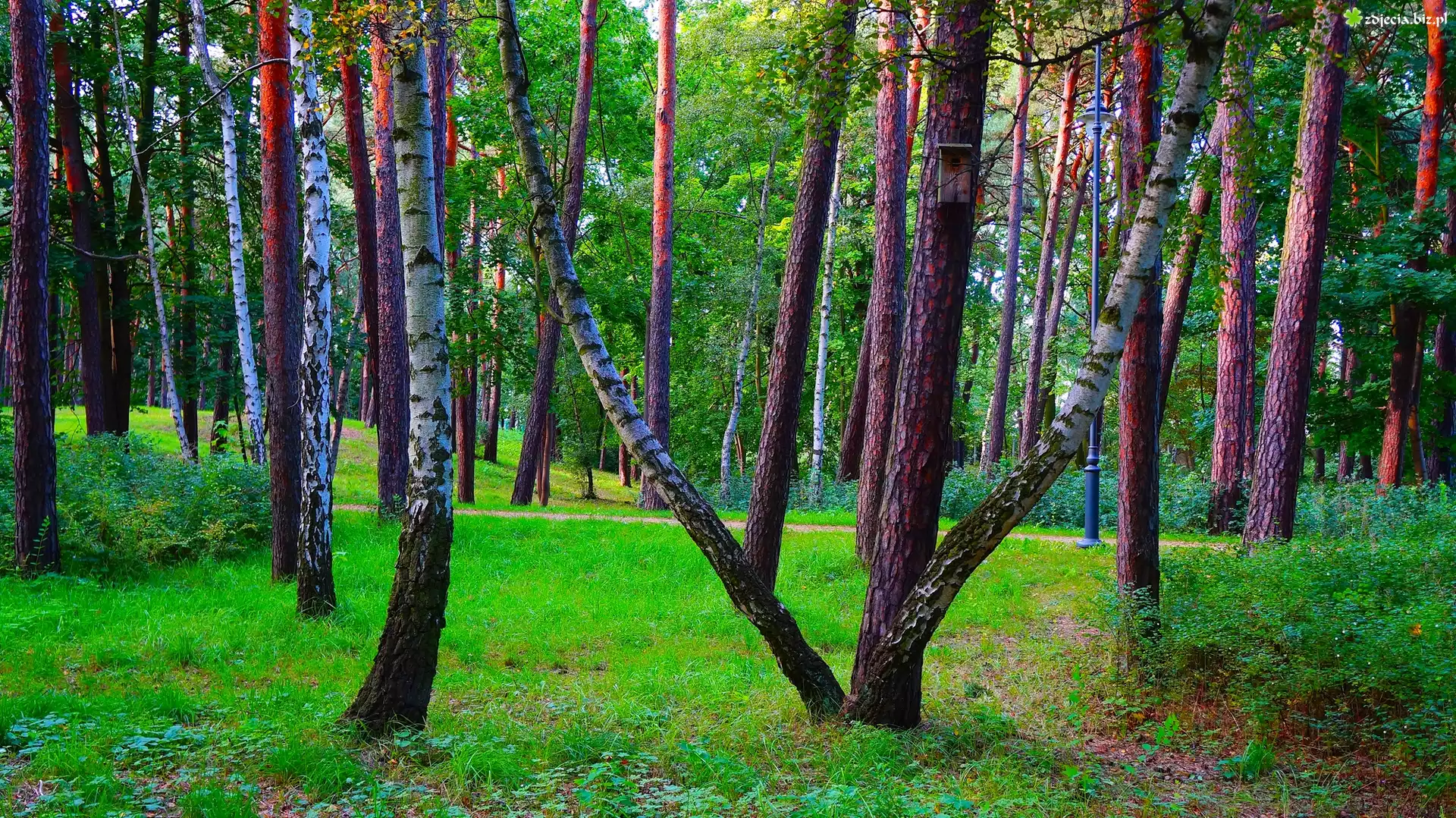 Zdjęcie Park, Drzewa, Brzozy, Zieleń, Rośliny