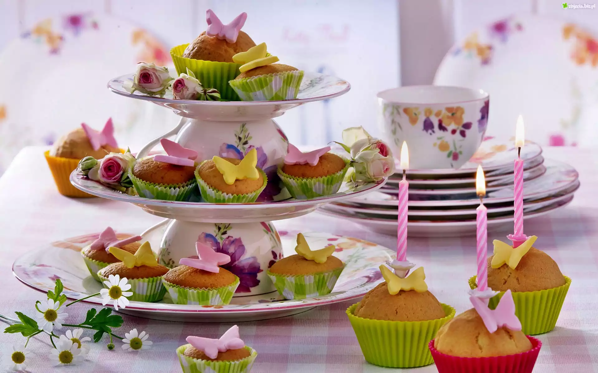 Zdjęcie, Babeczki, Patera, Świeczki