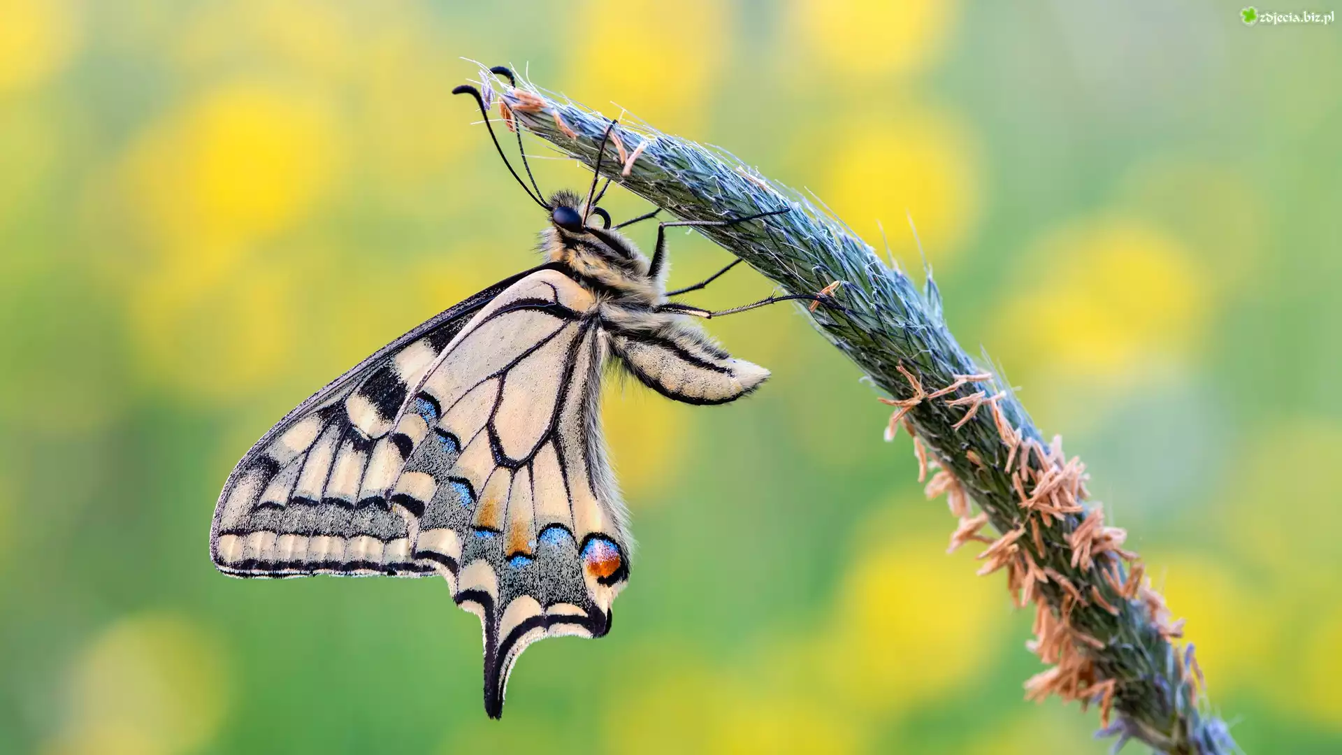 Zdjęcie Motyl, Paź królowej, Źdźbło, Makro