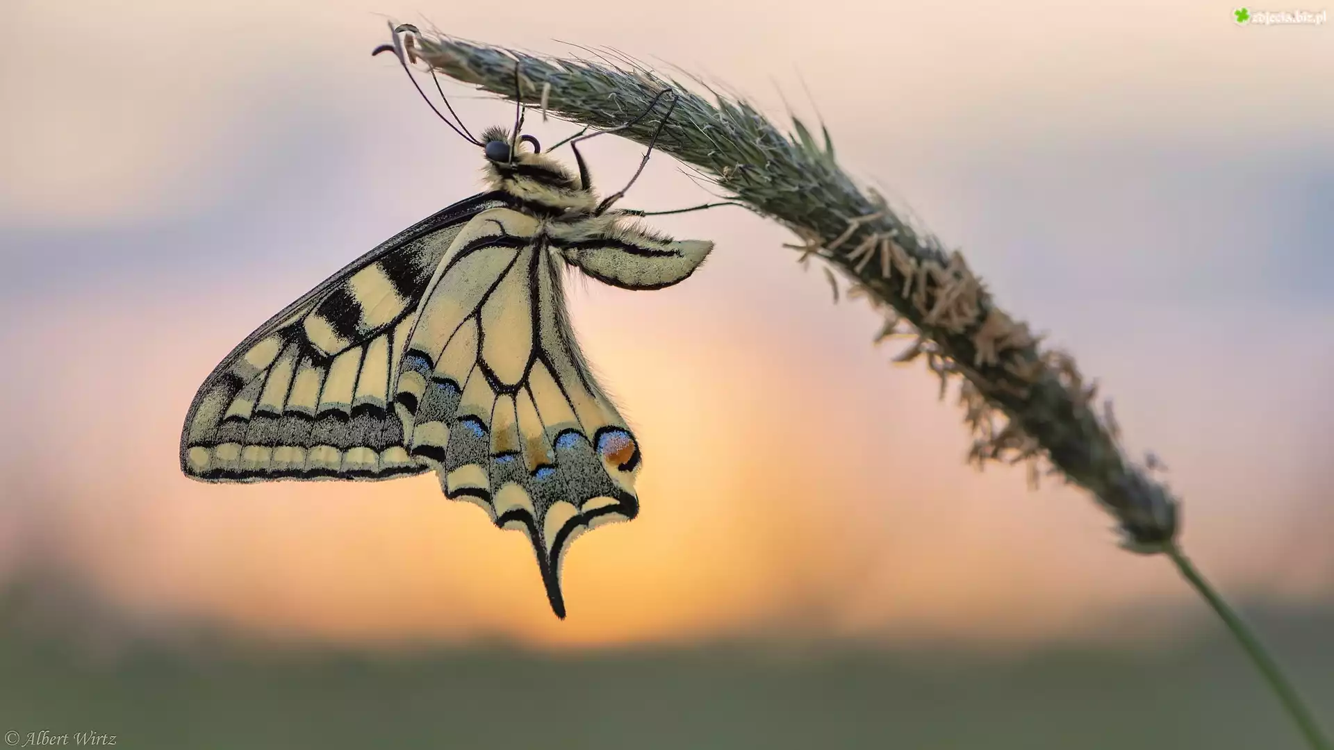 Zdjęcie Motyl, Paź królowej, Trawa, Źdźbło