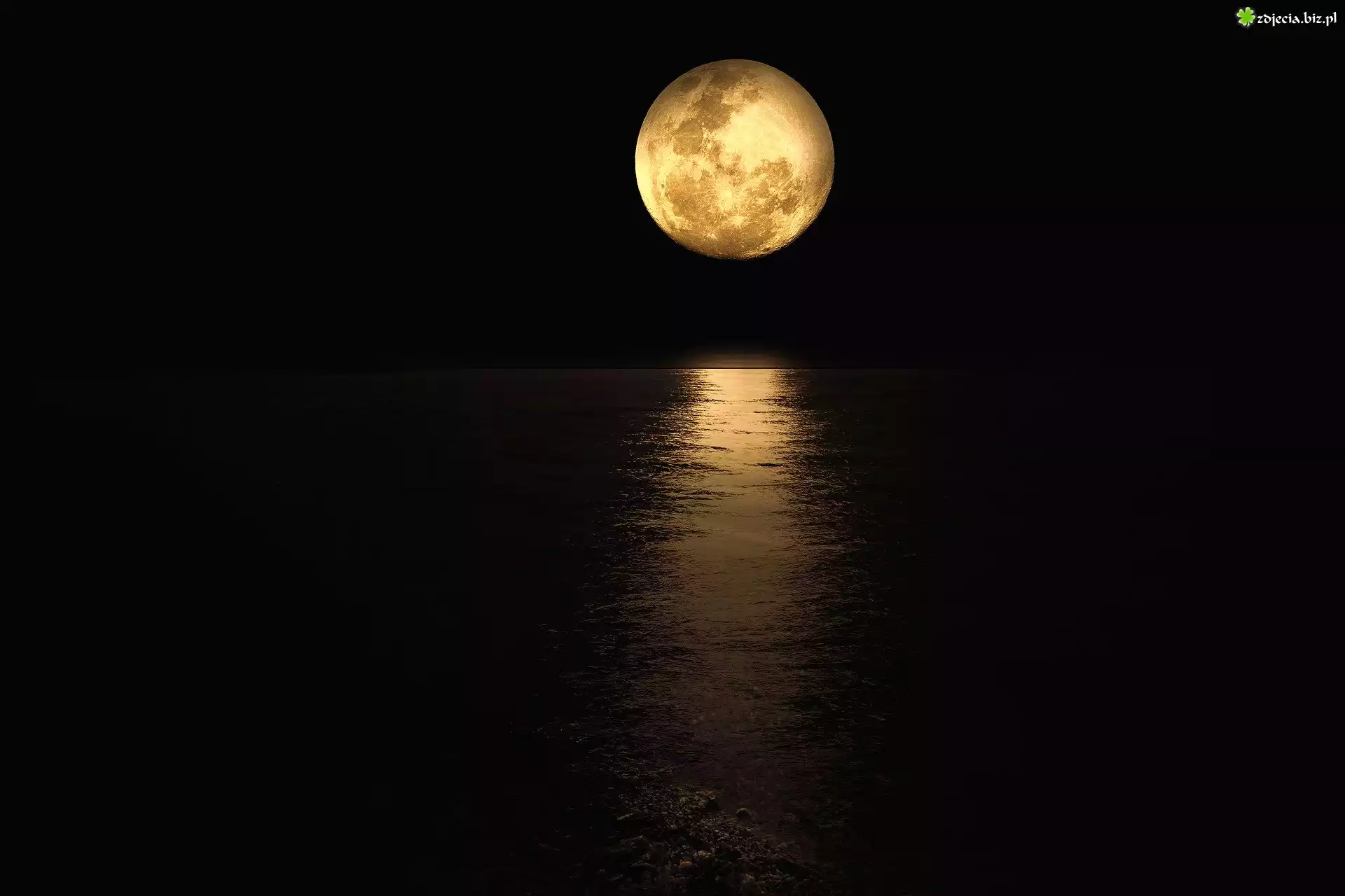 Zdjęcie Pełnia, Księżyc, Noc, Morze, Woda