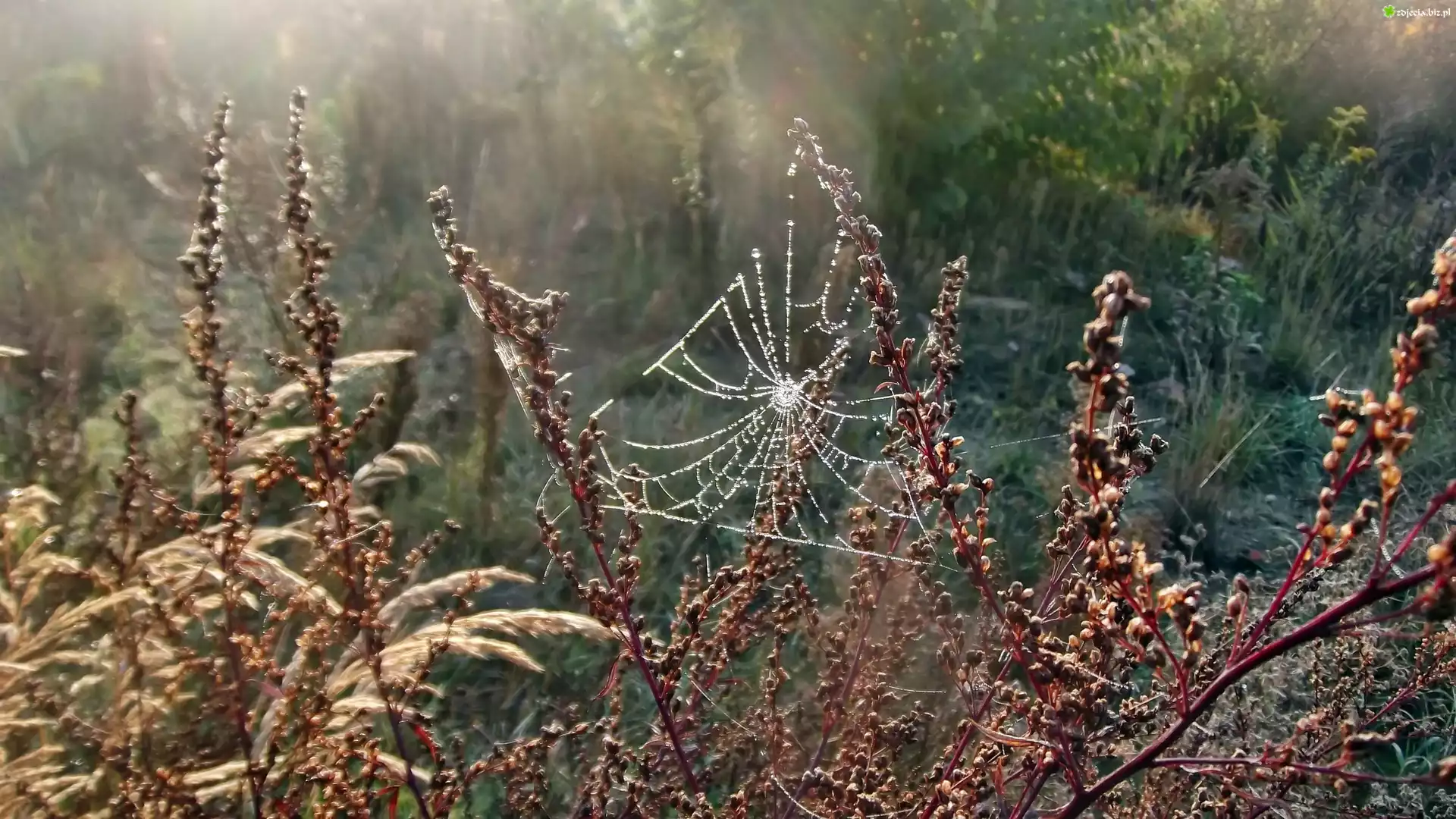 Zdjęcie Perłowa, Pajęczyna, Zieleń, Rozmazane, Tło