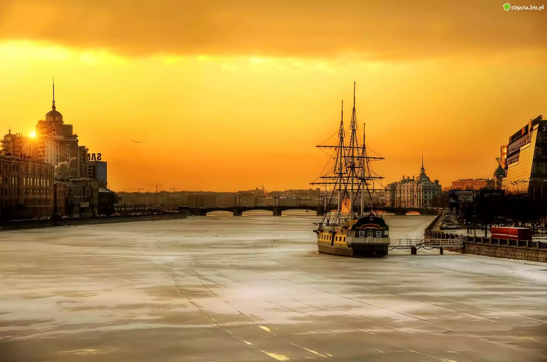 Zdjęcie Petersburg, Zachód Słońca, Statek, Miasto