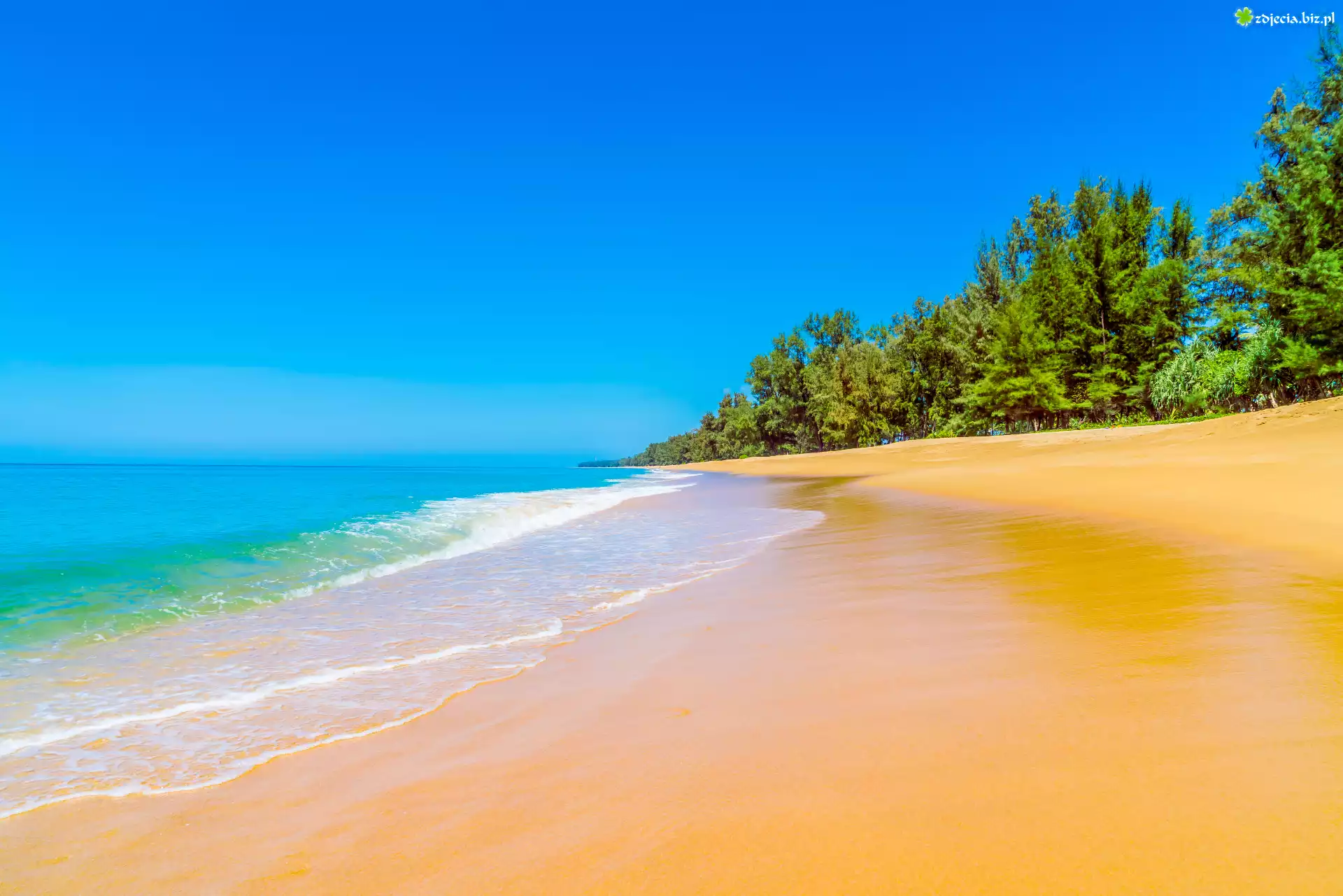Zdjęcie Lato, Ocean, Plaża, Piasek, Niebieskie, Niebo, Drzewa