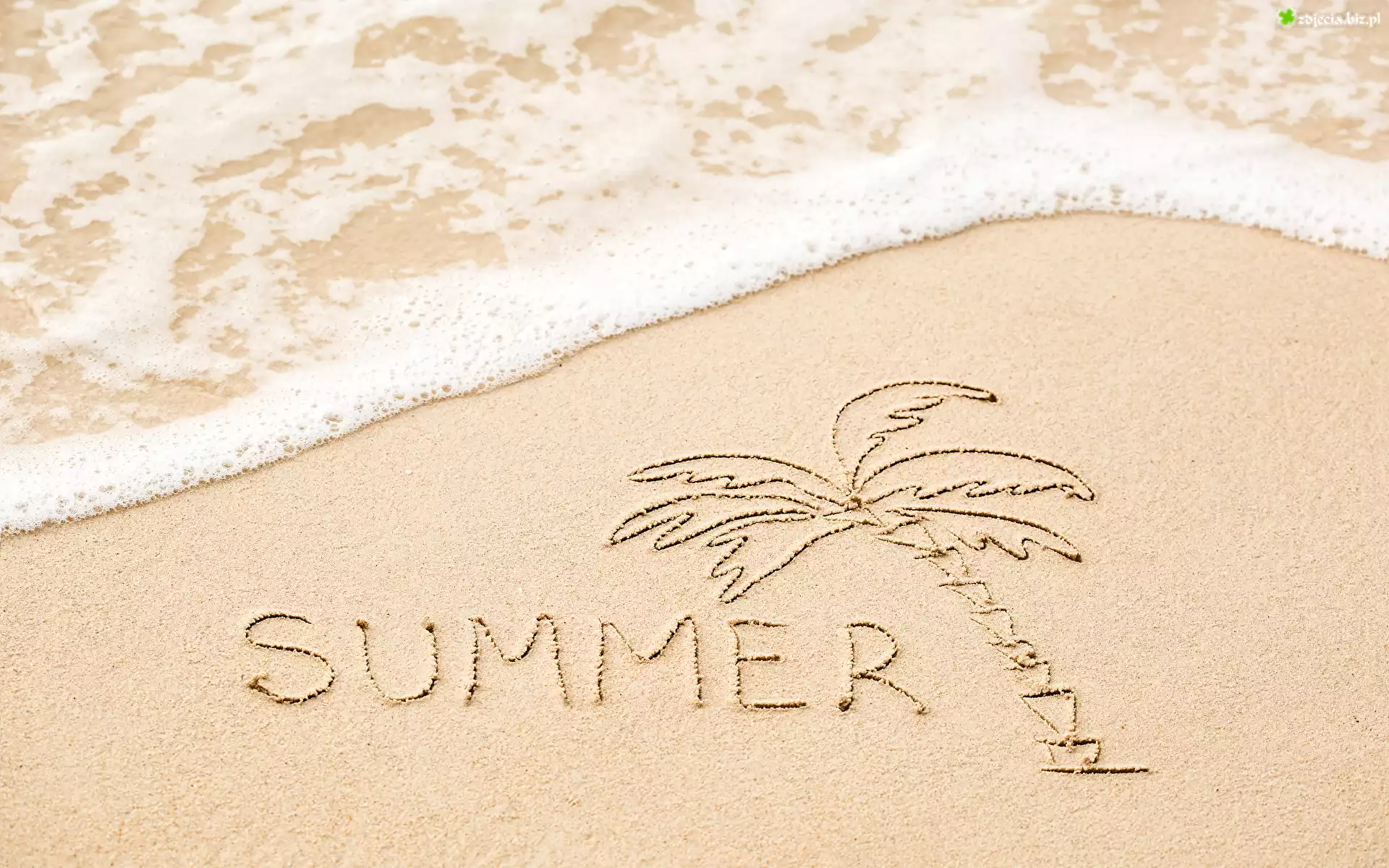 Zdjęcie Plaża, Piasek, Napis, Summer, Lato, Palma, Woda