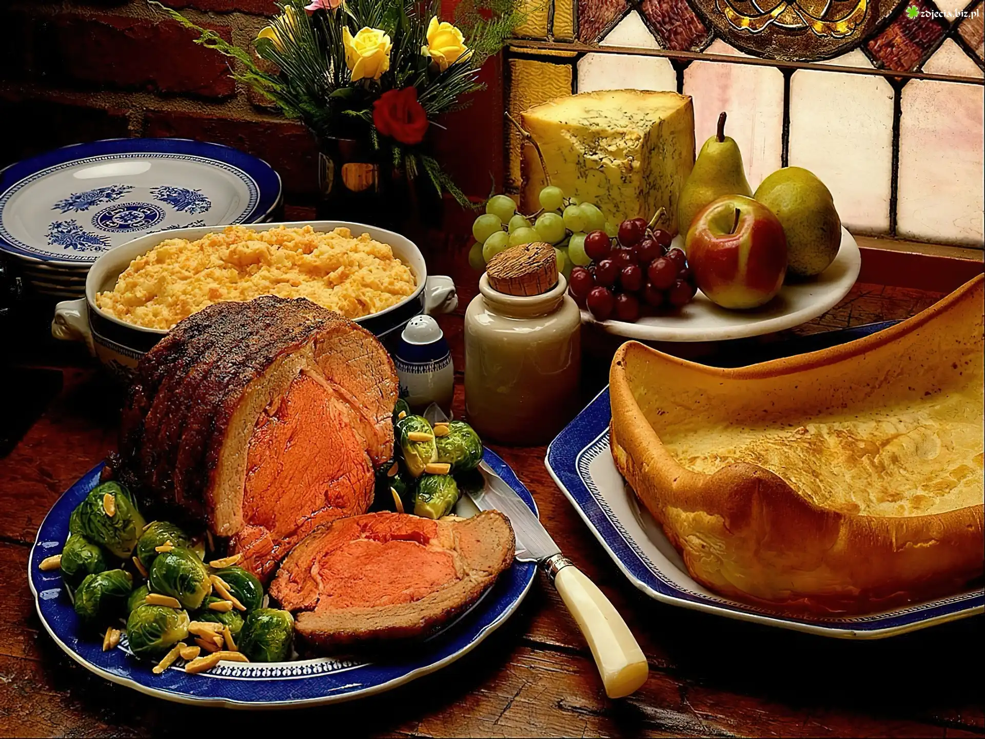 Pokrojone, Plastry, Mięsa Pieczona, Szynka, Owoce, Brukselka Pieczeń, Sztućce Pieczeń, Gruszki, Sztućce, Patera Pieczeń, Ziemniaki, Ketchup, Piwo, Tacka, Sztućce Frytki, Mięso, Sałata