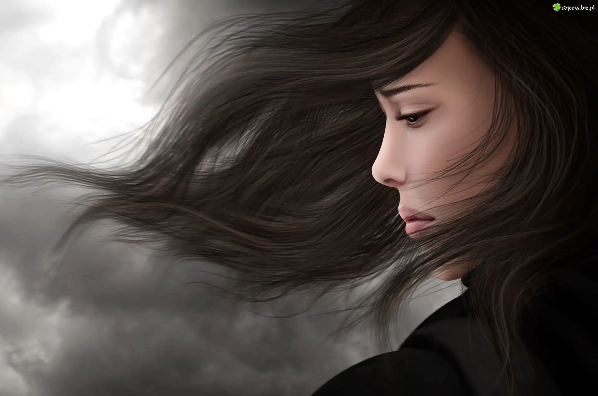 Zdjęcie Piękna, Smutna, Brunetka, Grafika