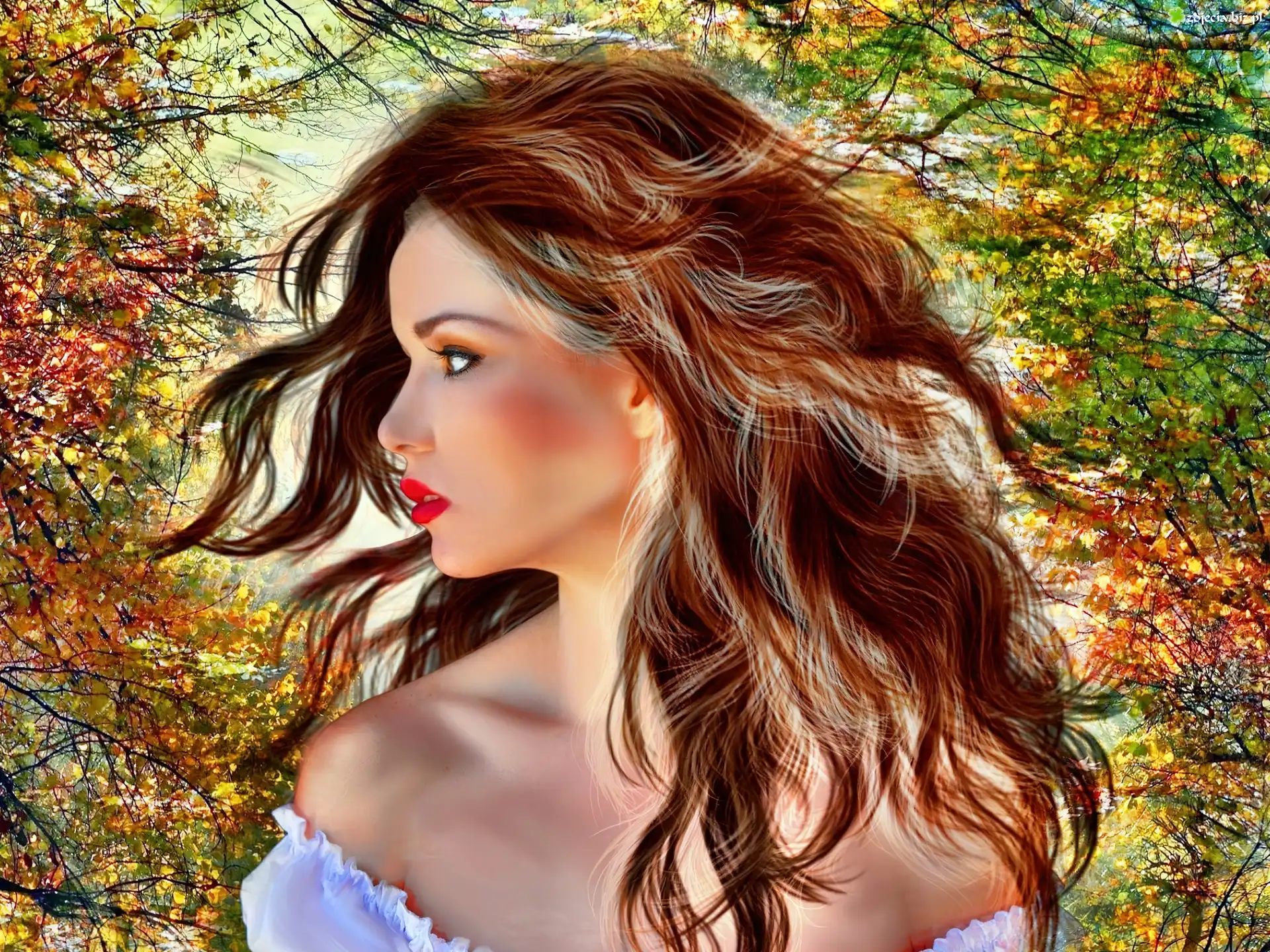 Zdjęcie Piękna, Kobieta, Jesienne, Drzewa