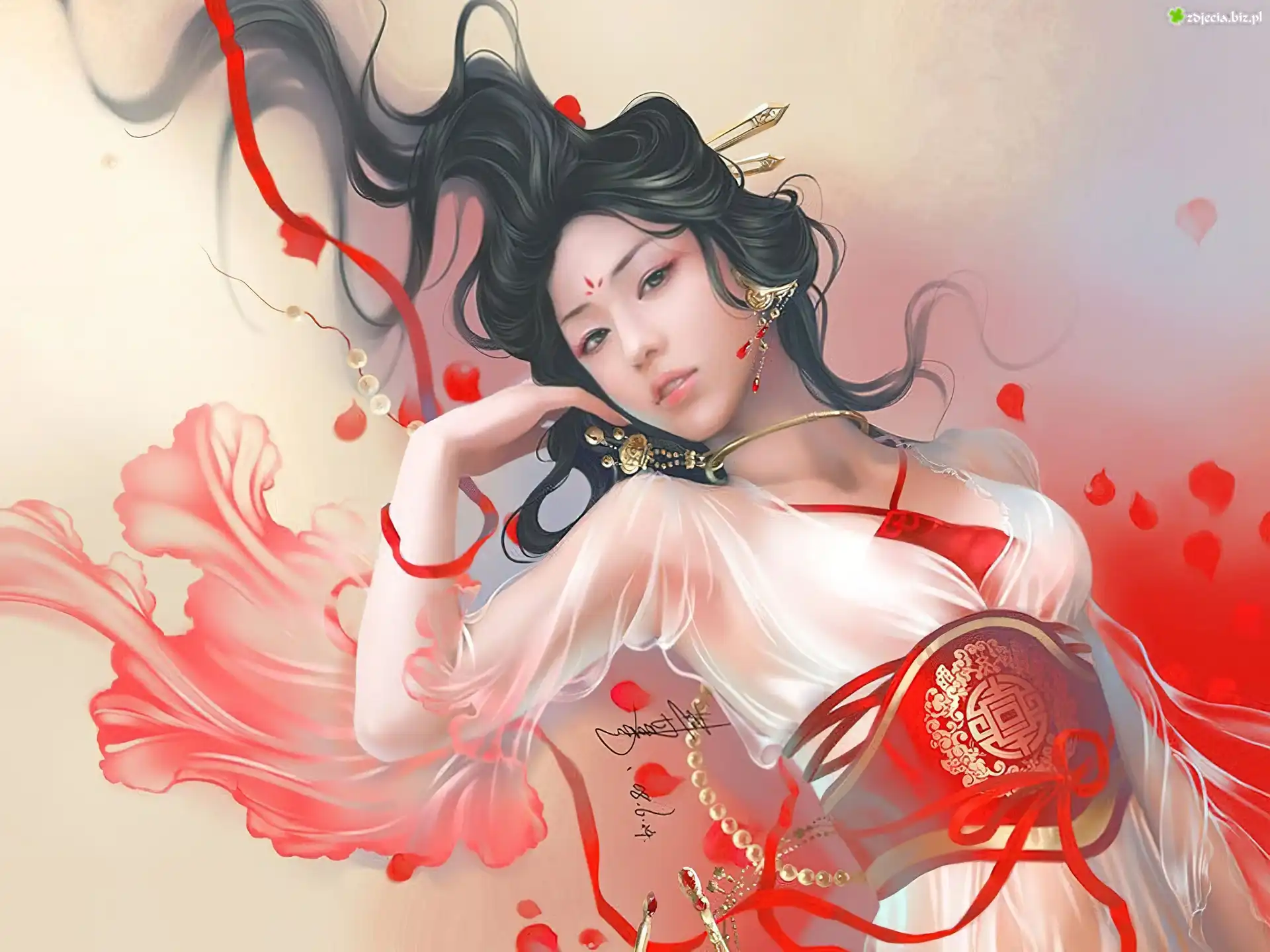 Zdjęcie Piękna, Azjatka, Płatki, Róż
