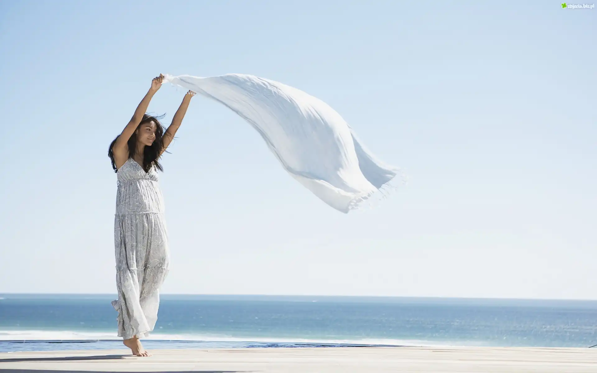 Zdjęcie Piękna, Brunetka, Chusta, Plaża, Morze