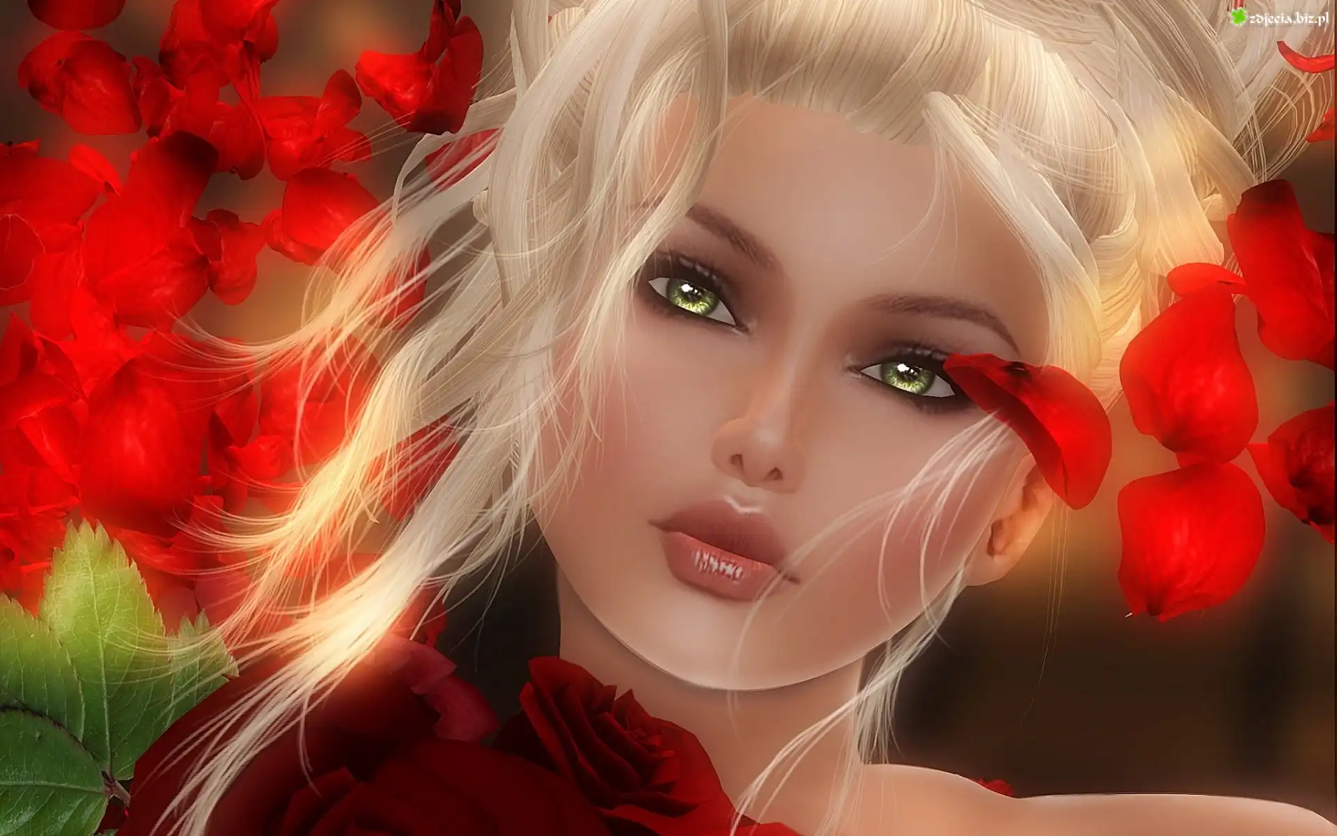 Zdjęcie Piękna, Kobieta, Płatki, Róż, Portret, Grafika