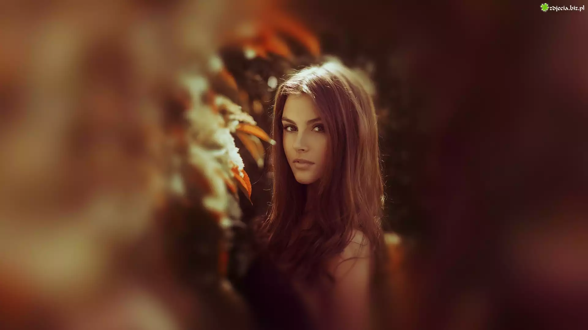 Zdjęcie Piękna, Dziewczyna, Las, Drzewa, Przebijające, Światło