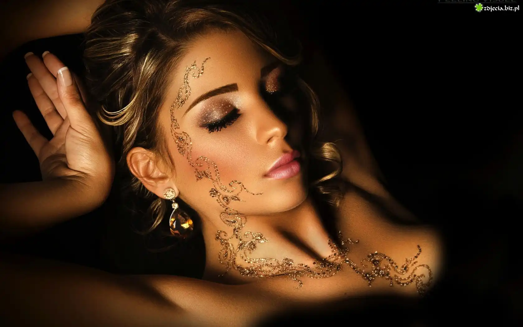 Zdjęcie Piękna, Kobieta, Złoty, Makijaż