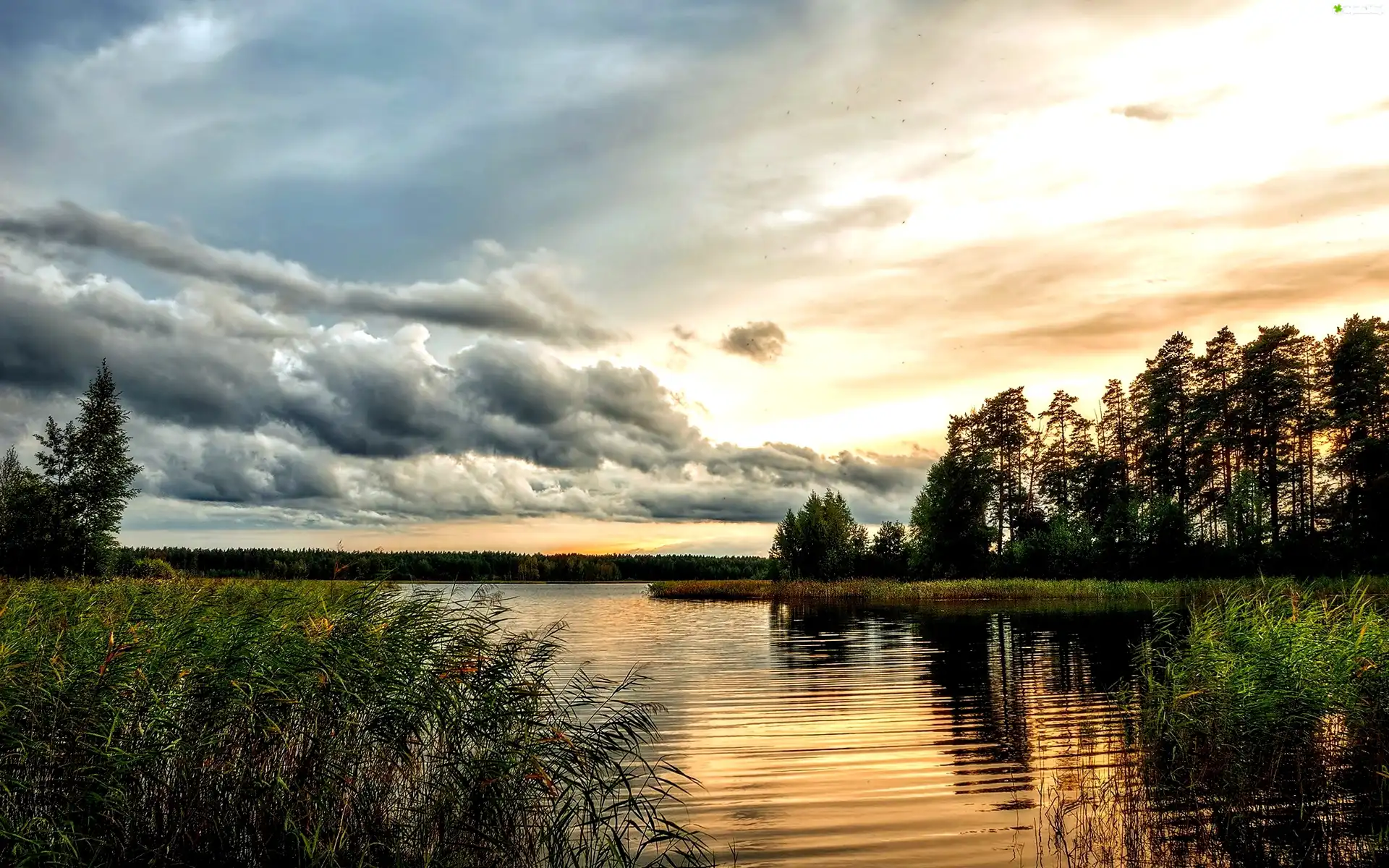 Zdjęcie Piękne, Jezioro, Szuwary, Drzewa
