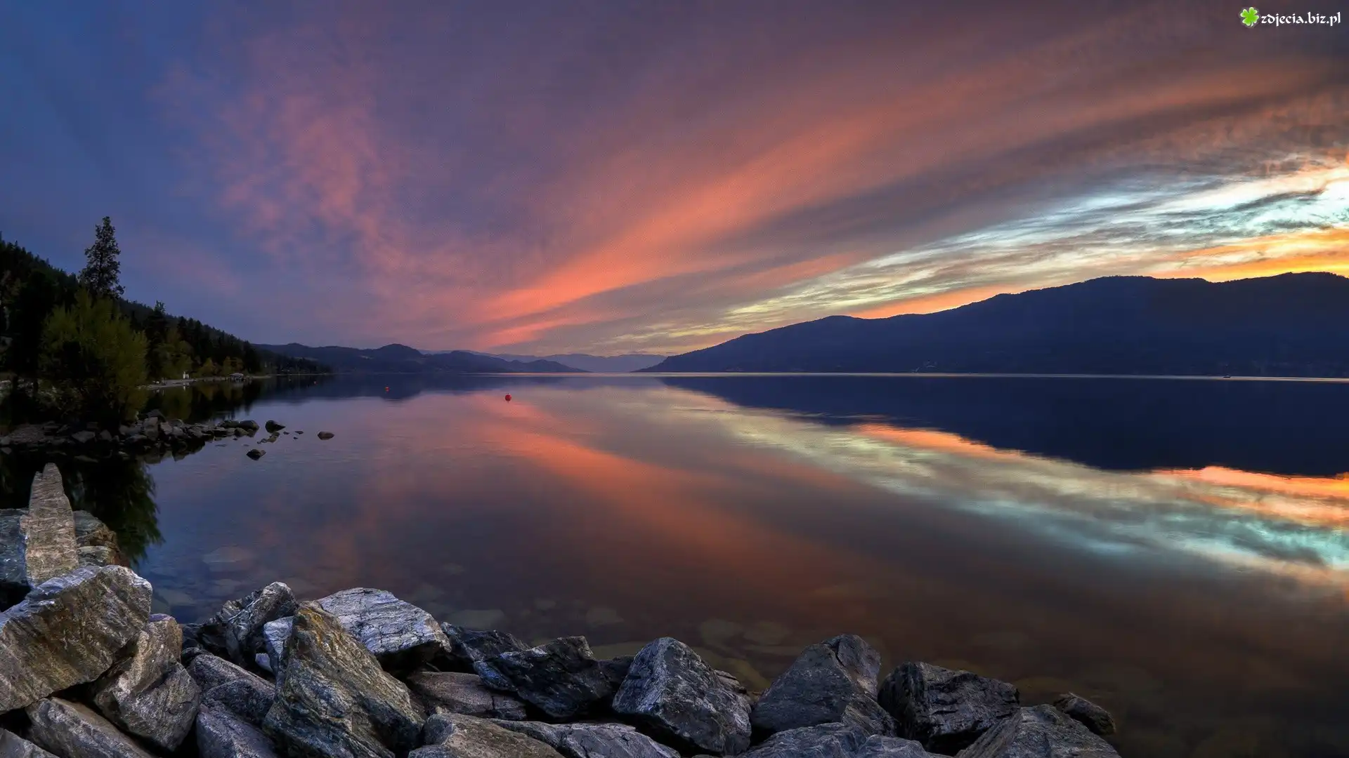 Zdjęcie Piękny, Zachód, Słońca, Nad, Jeziorem