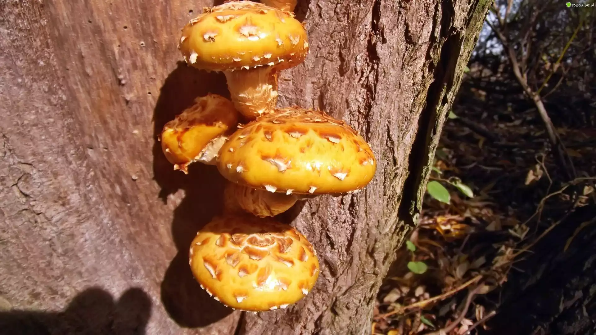 Zdjęcie Żółte, Grzyby, Pień, Drzewa
