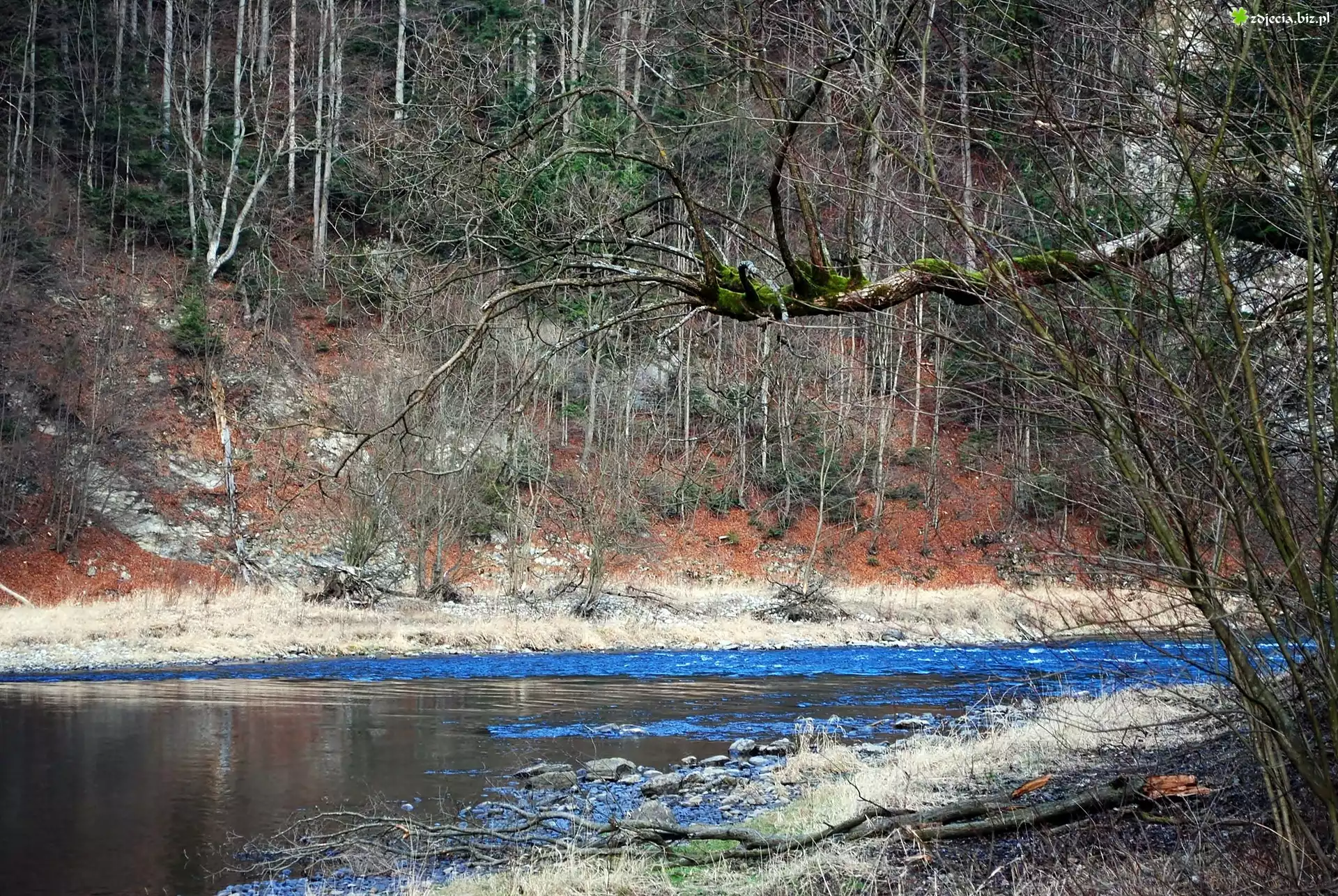 Zdjęcie Góry, Pieniny, Skarpa, Las, Rzeka, Dunajec, Wiosna