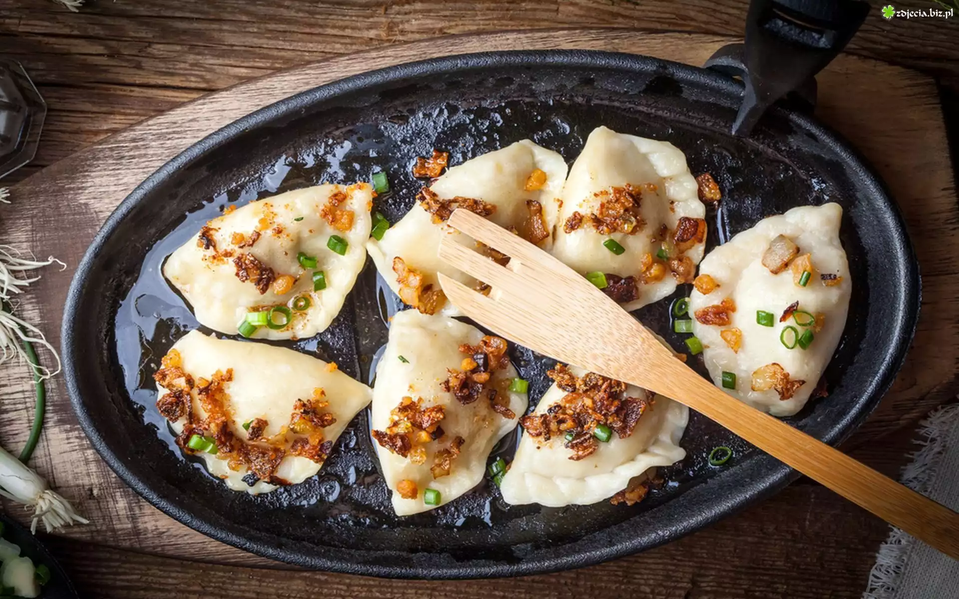 Zdjęcie Pierogi, Patelnia, Łopatka, Drewniana