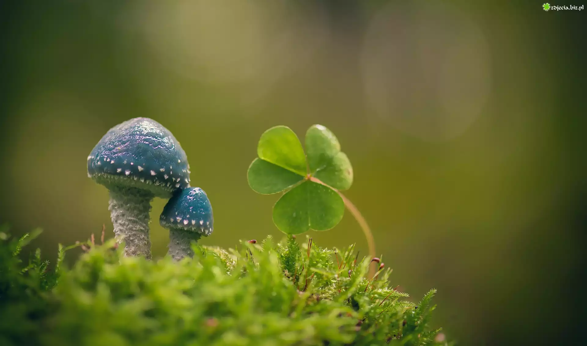 Zdjęcie, Pierścieniaki białoniebieskie, Grzybki, Niebieskie, Mech, Koniczyna