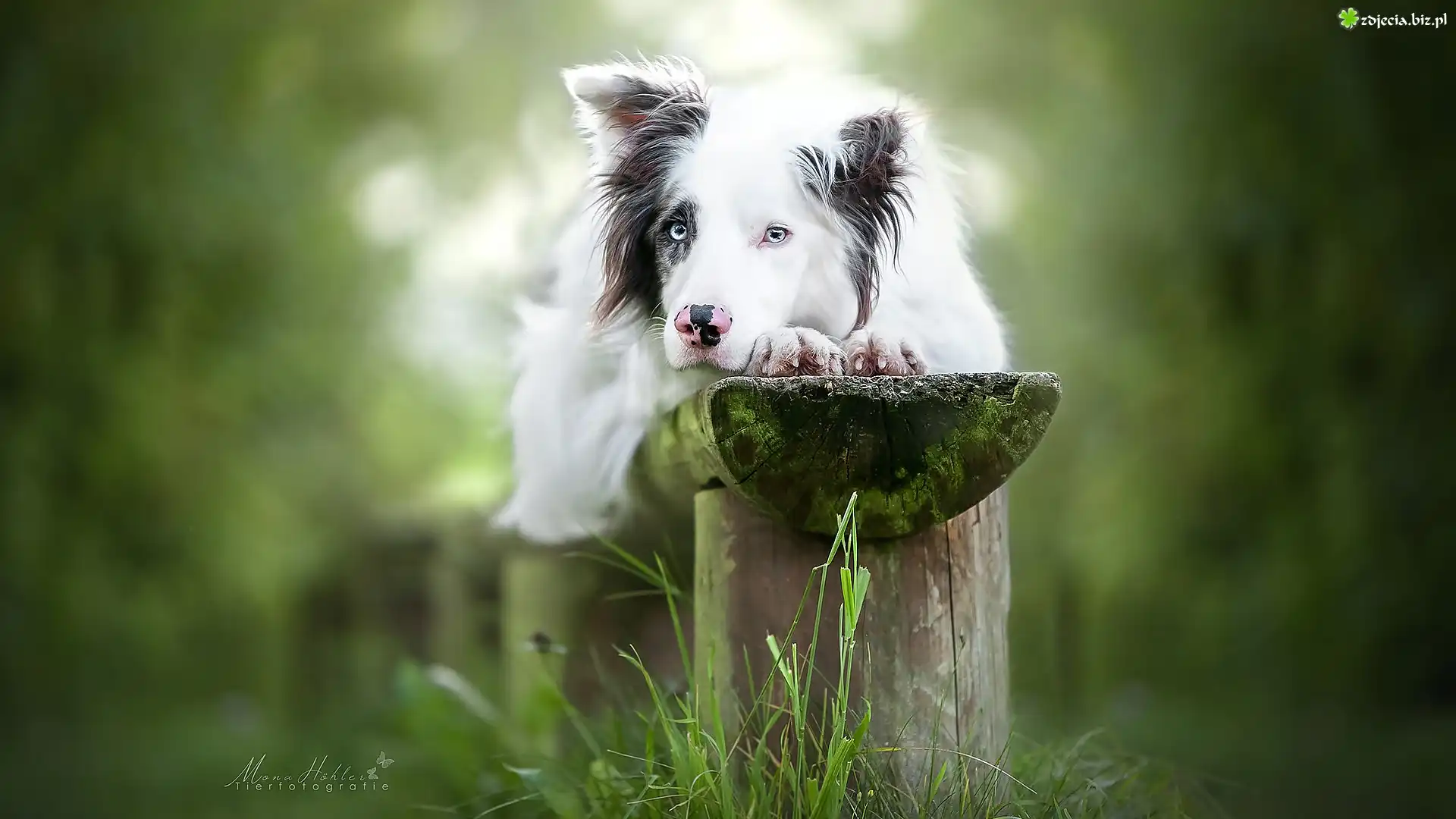 Zdjęcie Pies, Border collie, Mordka, Ławka, Trawa