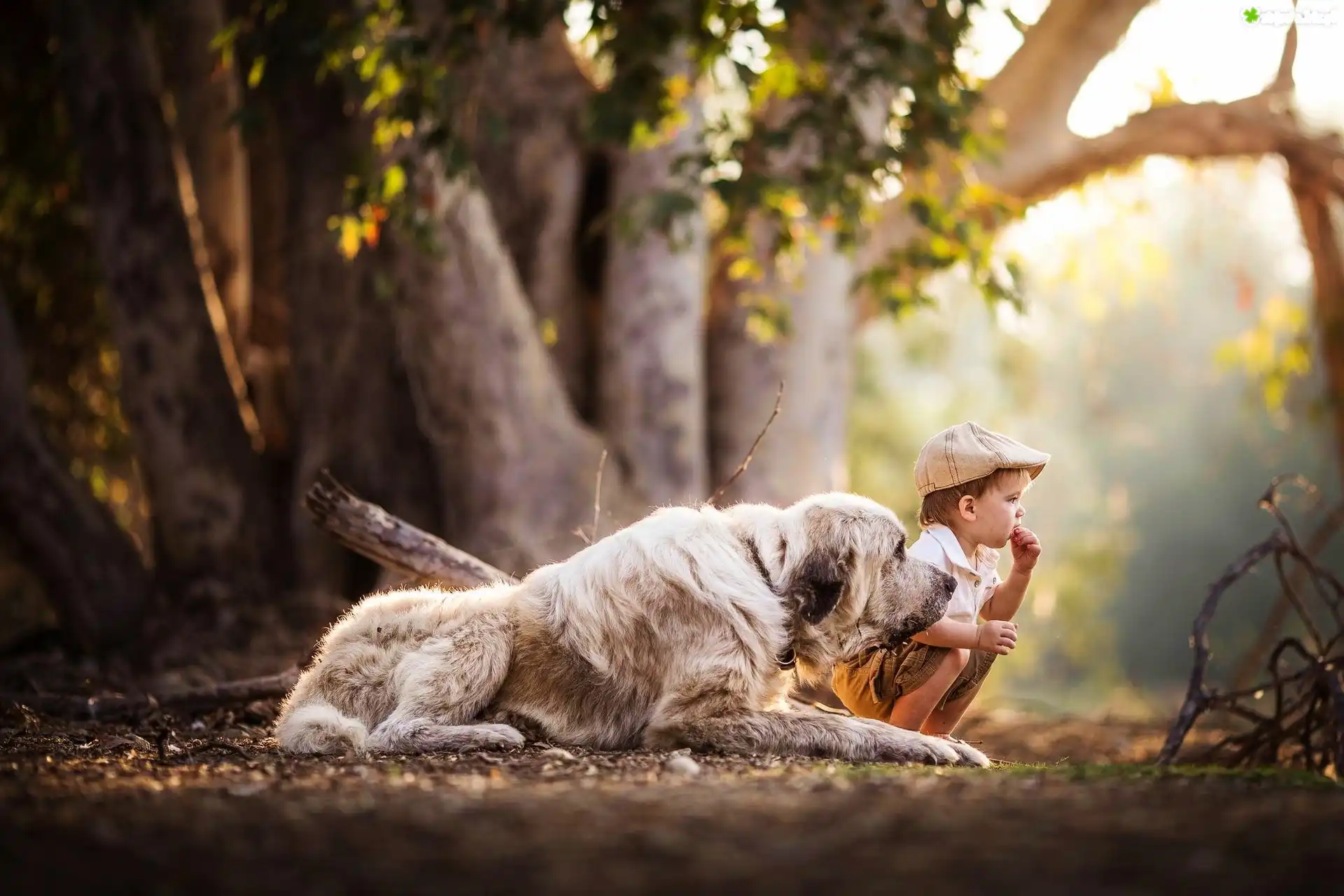 Zdjęcie Chłopiec, Pies, Pnie, Owczarek środkowoazjatycki