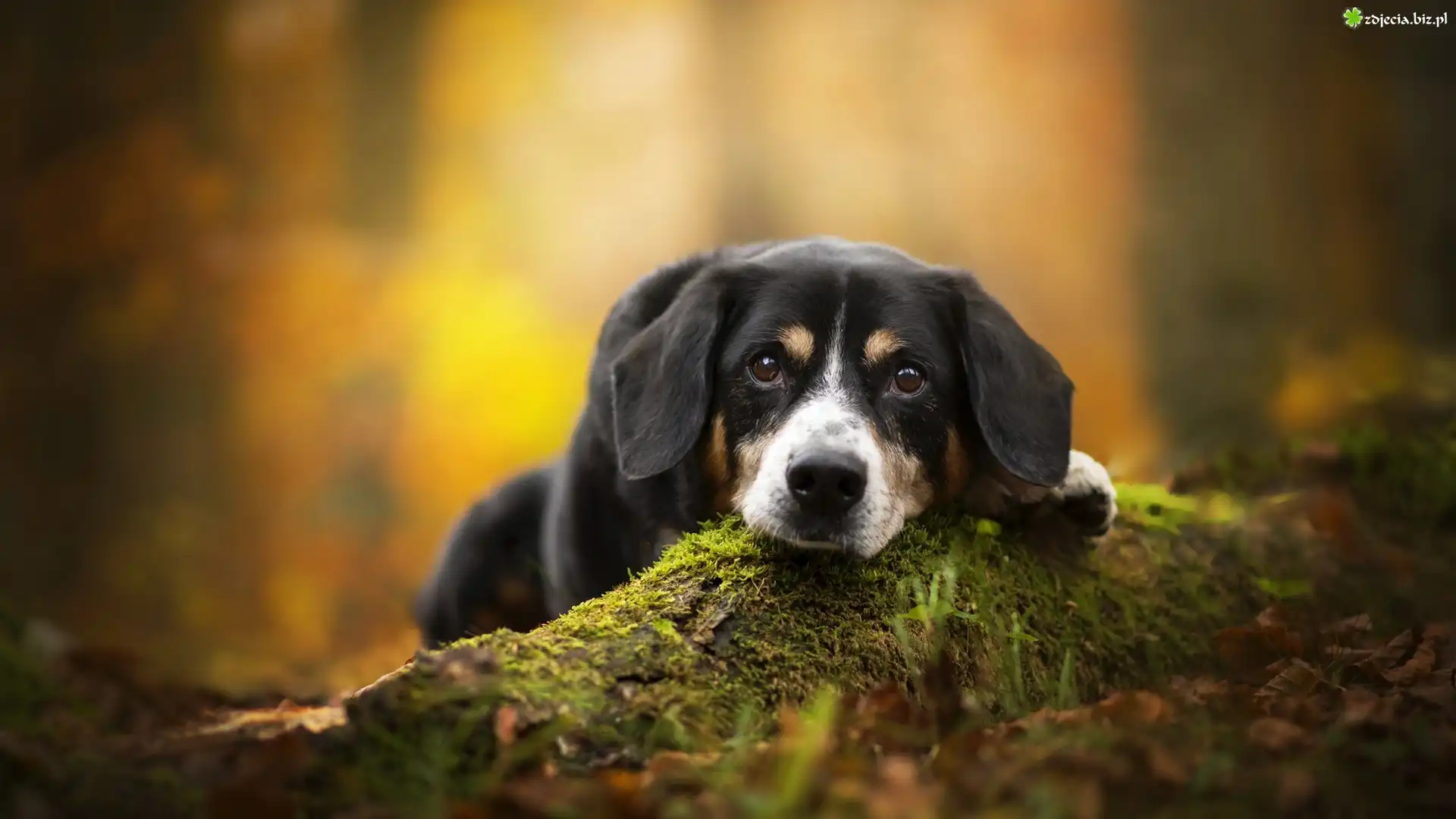Zdjęcie Pies, Entlebucher, Mordka, Ściółka, Mech