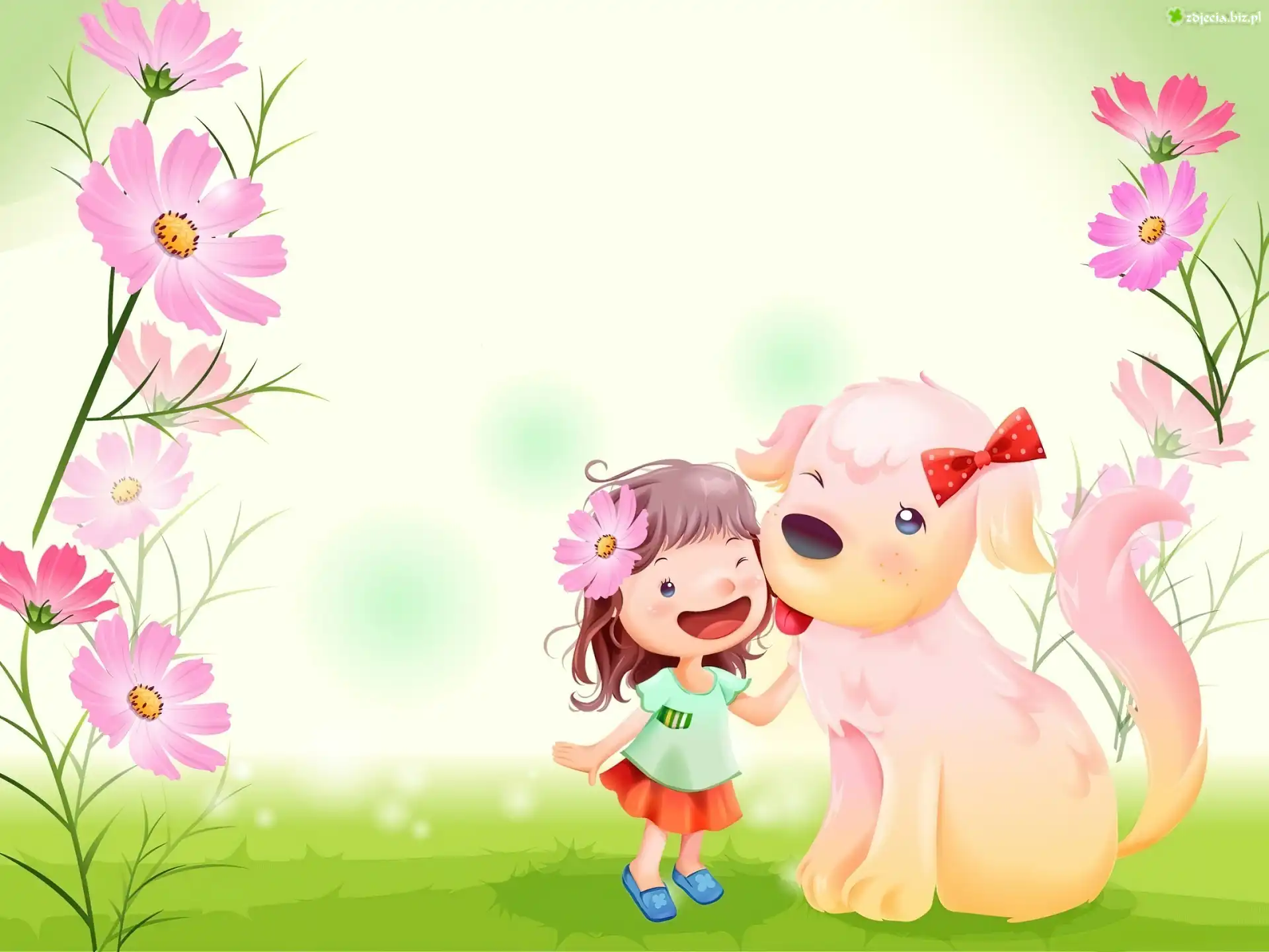 Zdjęcie Dziecko, Pies, Kwiaty