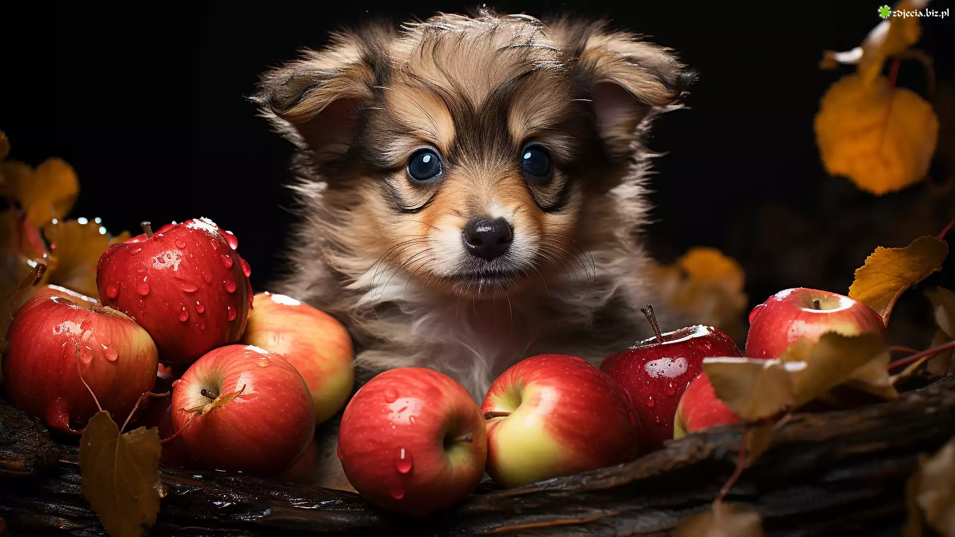 Zdjęcie, Pies, Szczeniak, Jabłka