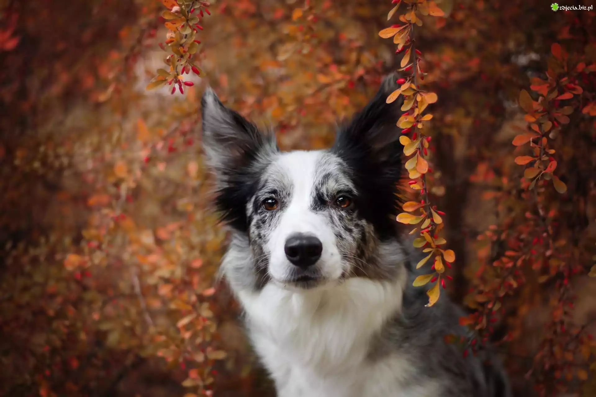 Zdjęcie, Pies, Border collie, Krzew, Gałązki