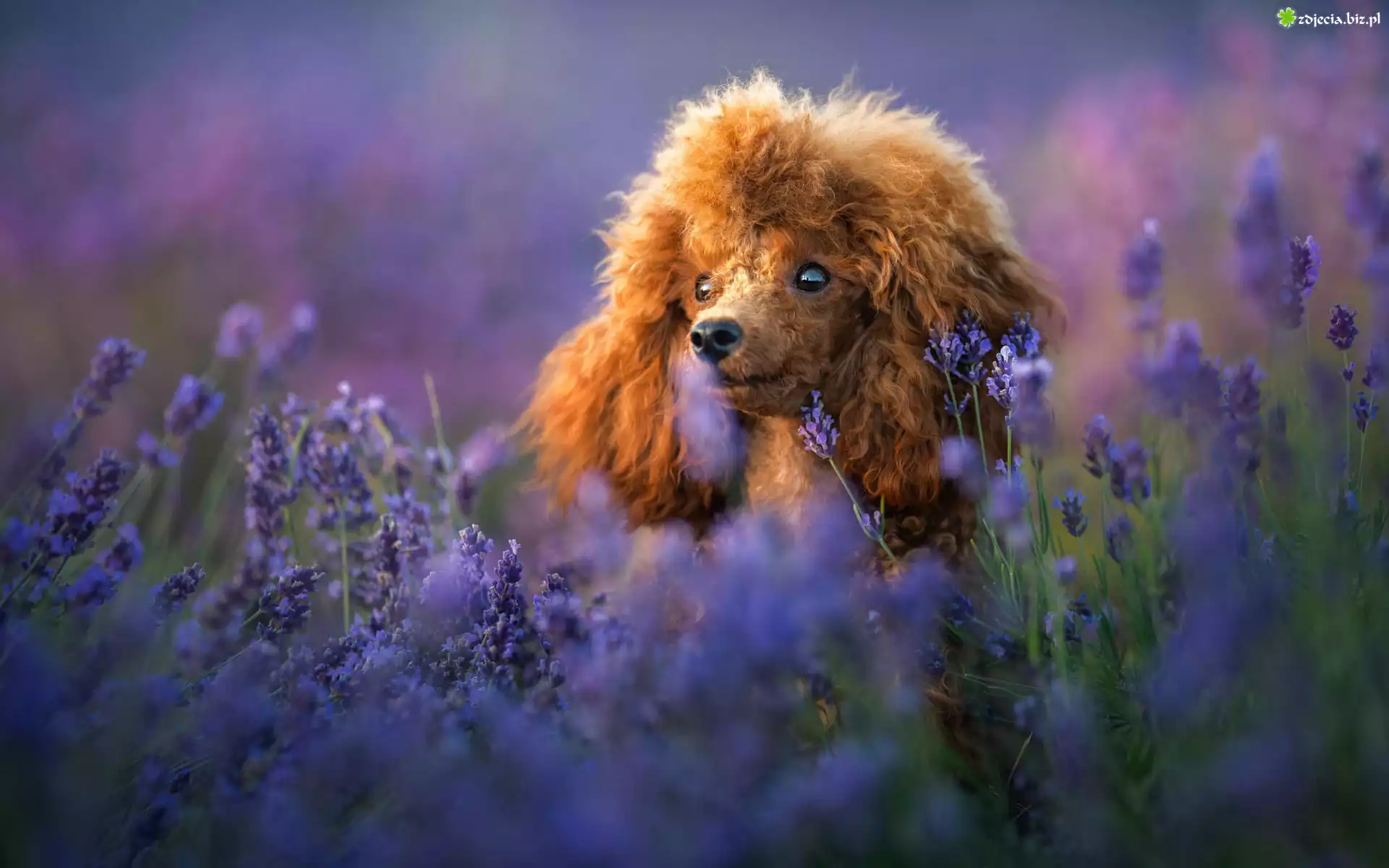 Zdjęcie Pies, Pudel, Lawenda