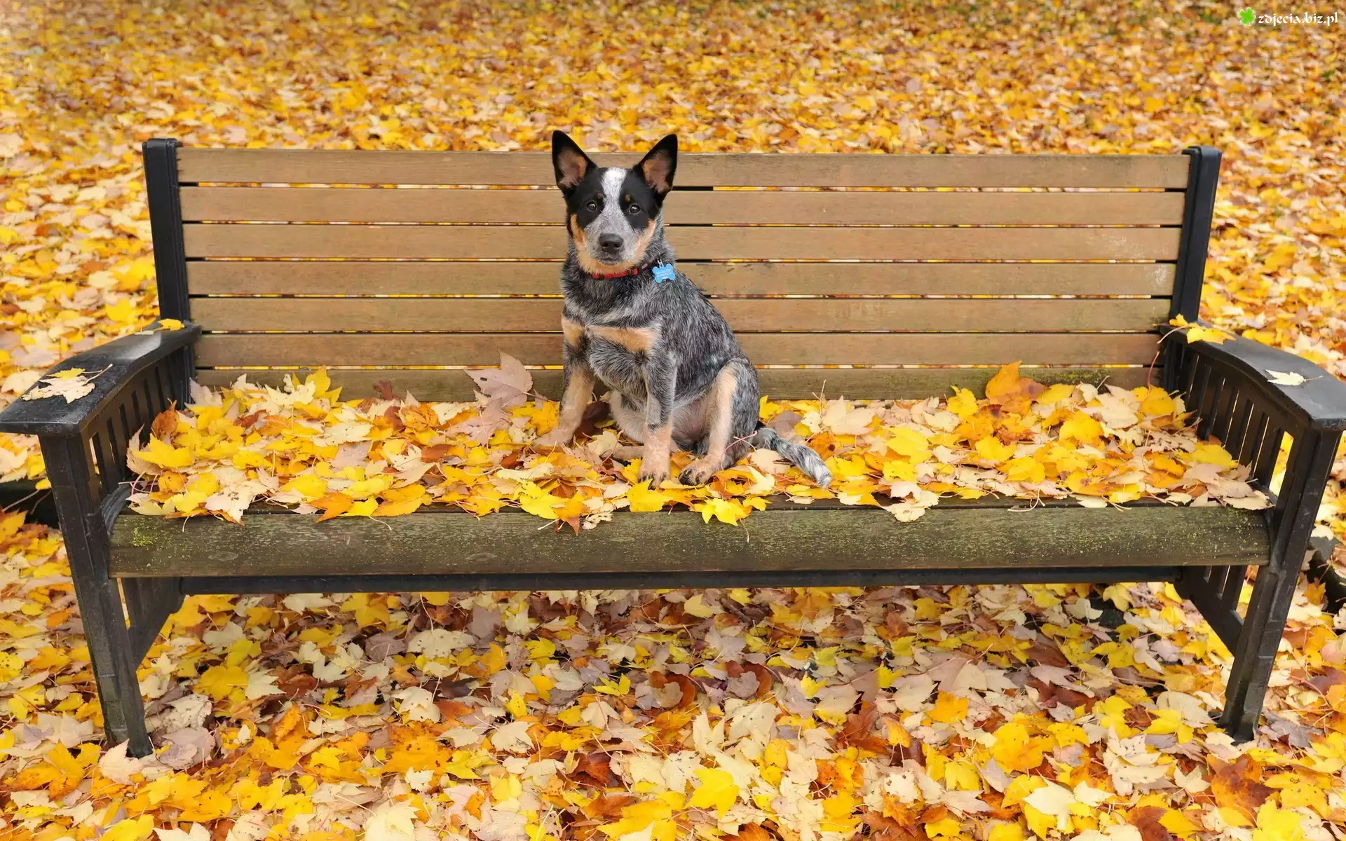 Zdjęcie, Ławka, Liście Australian cattle dog