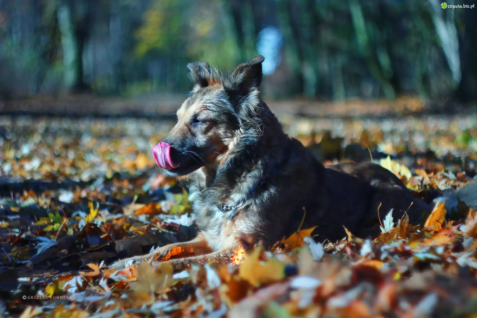 Zdjęcie, Pies, Suczka, Shila, Kundelek, Liście, Jesień