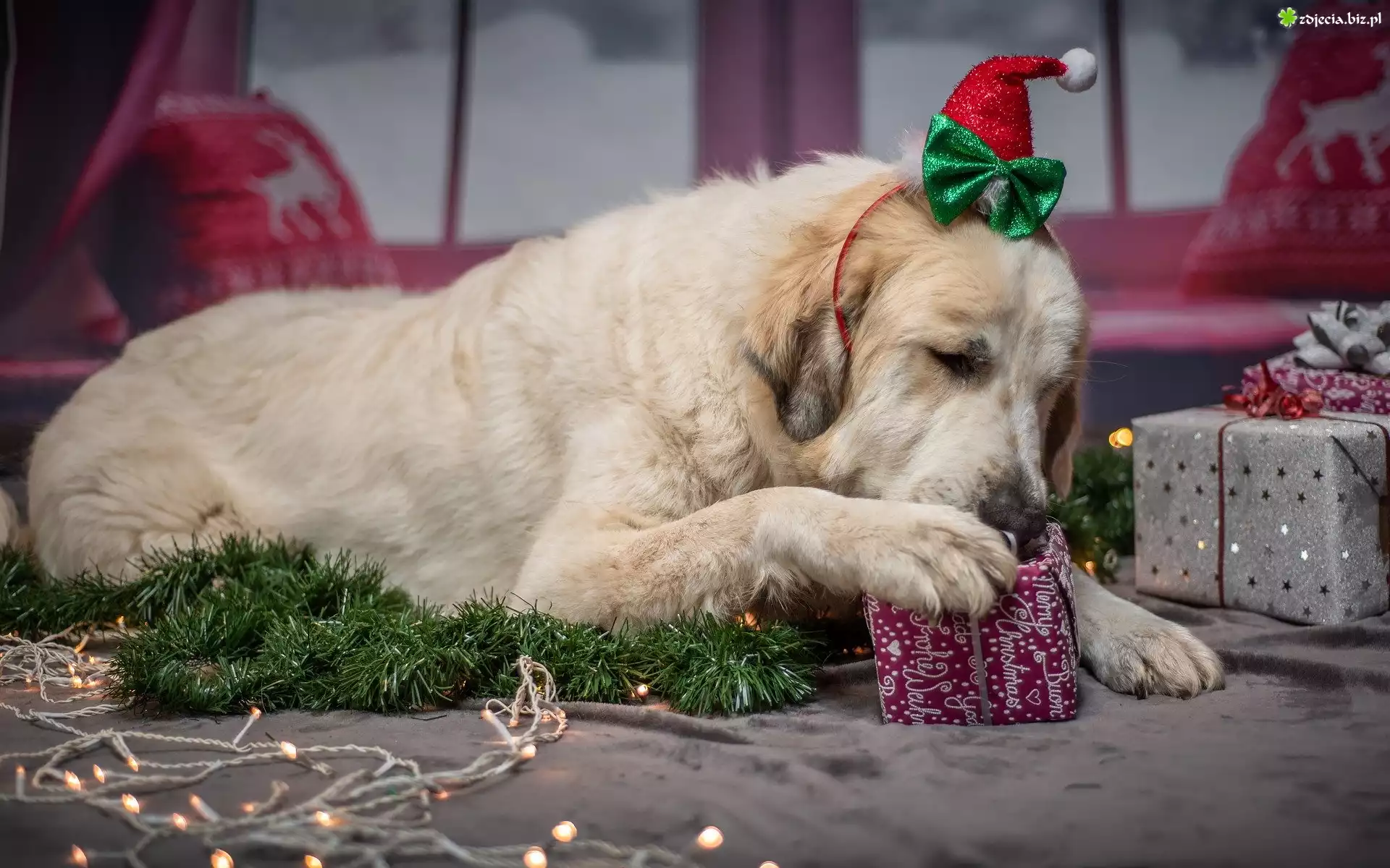 Zdjęcie Pies, Czapka, Mikołaja, Prezenty