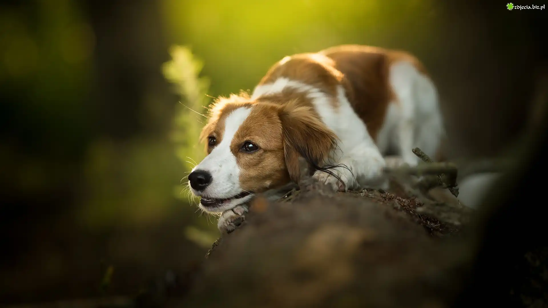Zdjęcie Pies, Płochacz holenderski, Mordka, Kłoda
